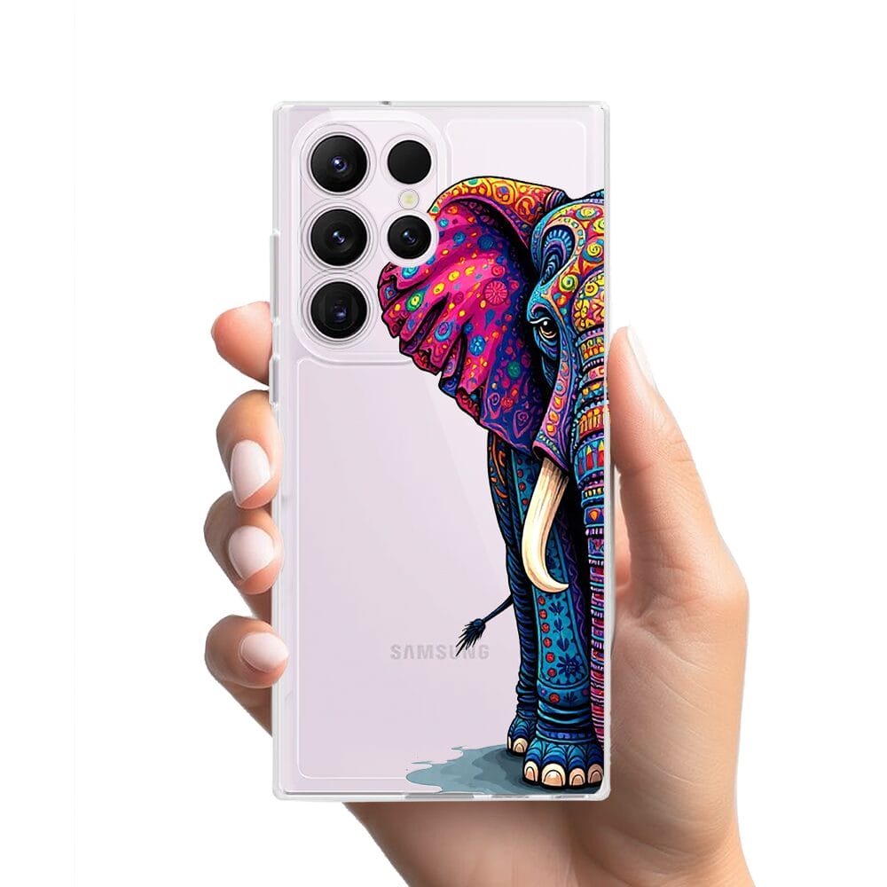 Etui do Samsung Galaxy S23 Ultra przeźroczyste, silikonowe Flexi, Dzika Mandala, Słoń