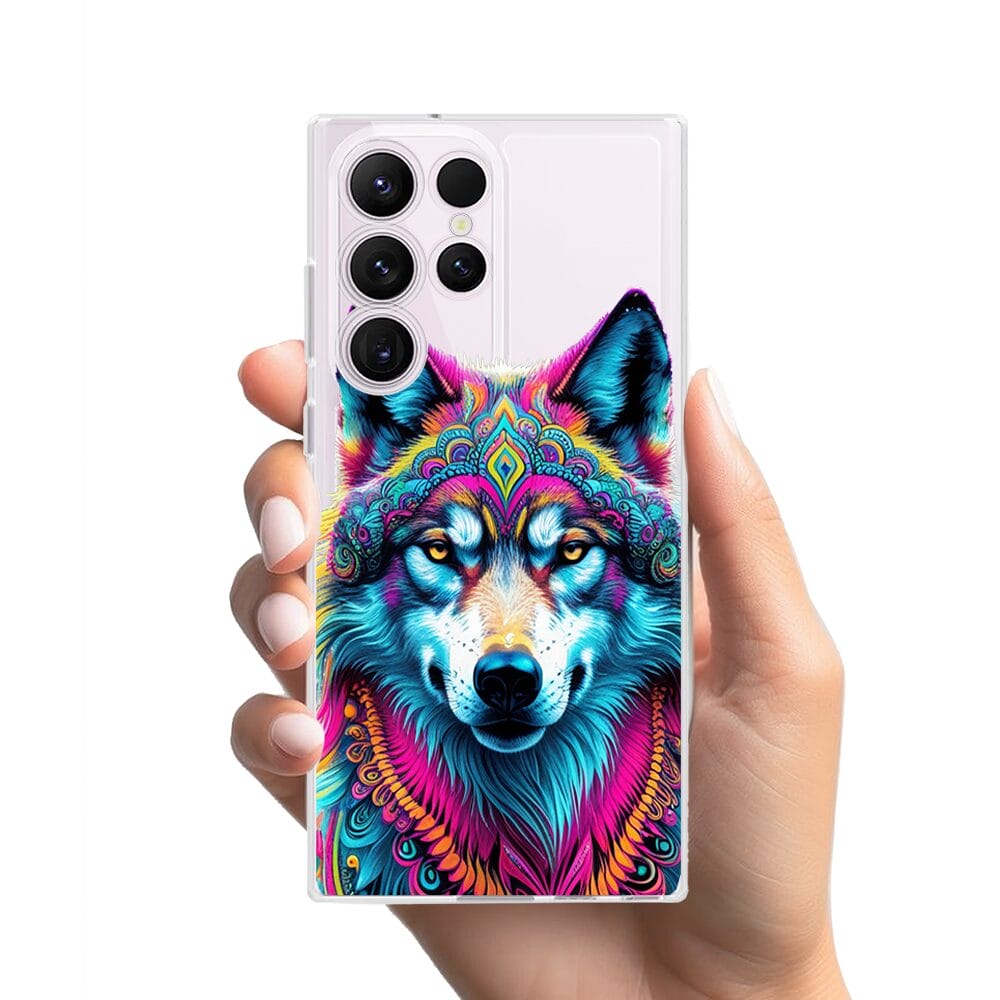 Etui do Samsung Galaxy S23 Ultra przeźroczyste, silikonowe Flexi, Dzika Mandala, Wilk