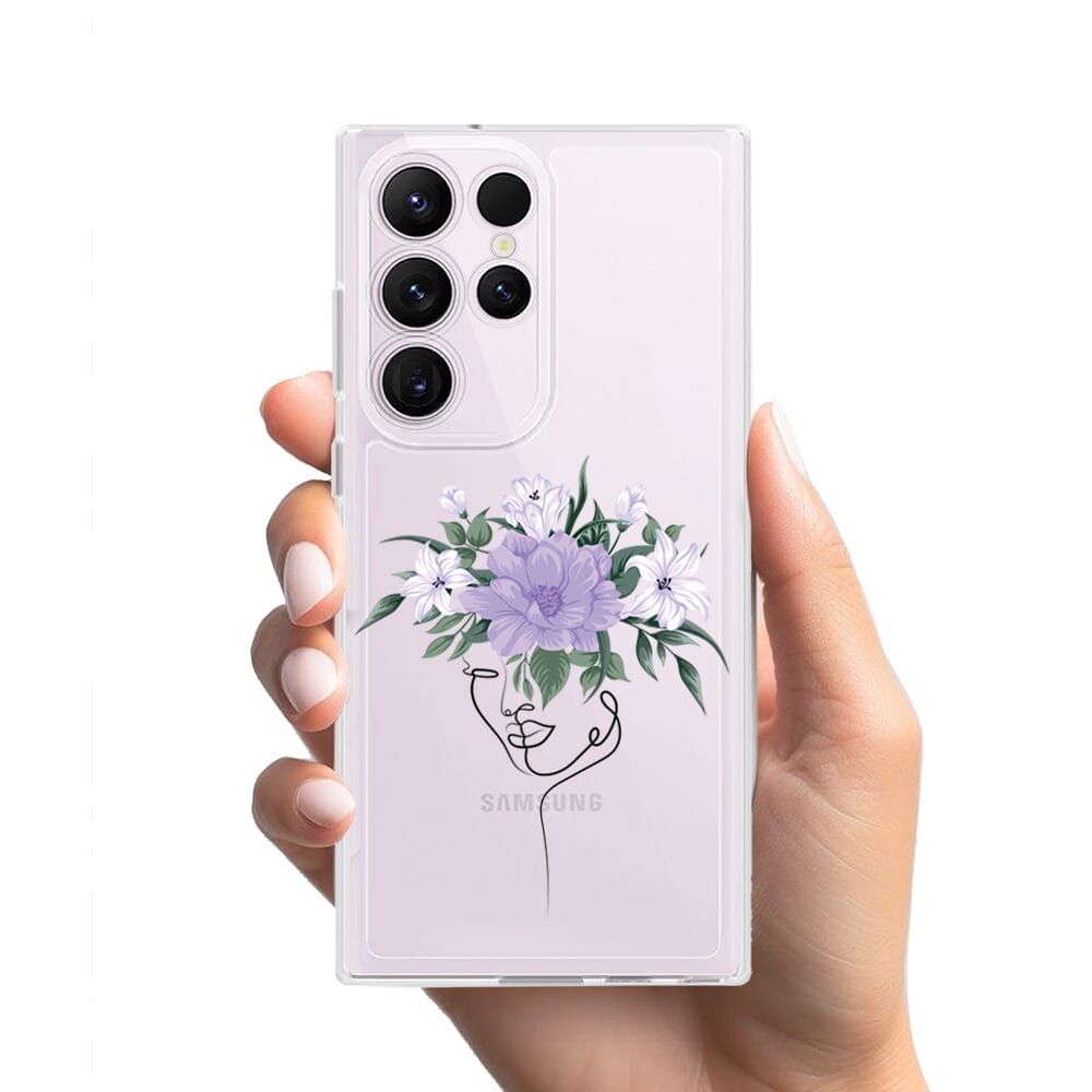 Etui do Samsung Galaxy S23 Ultra przeźroczyste, silikonowe Flexi, kobieta z kwiatami