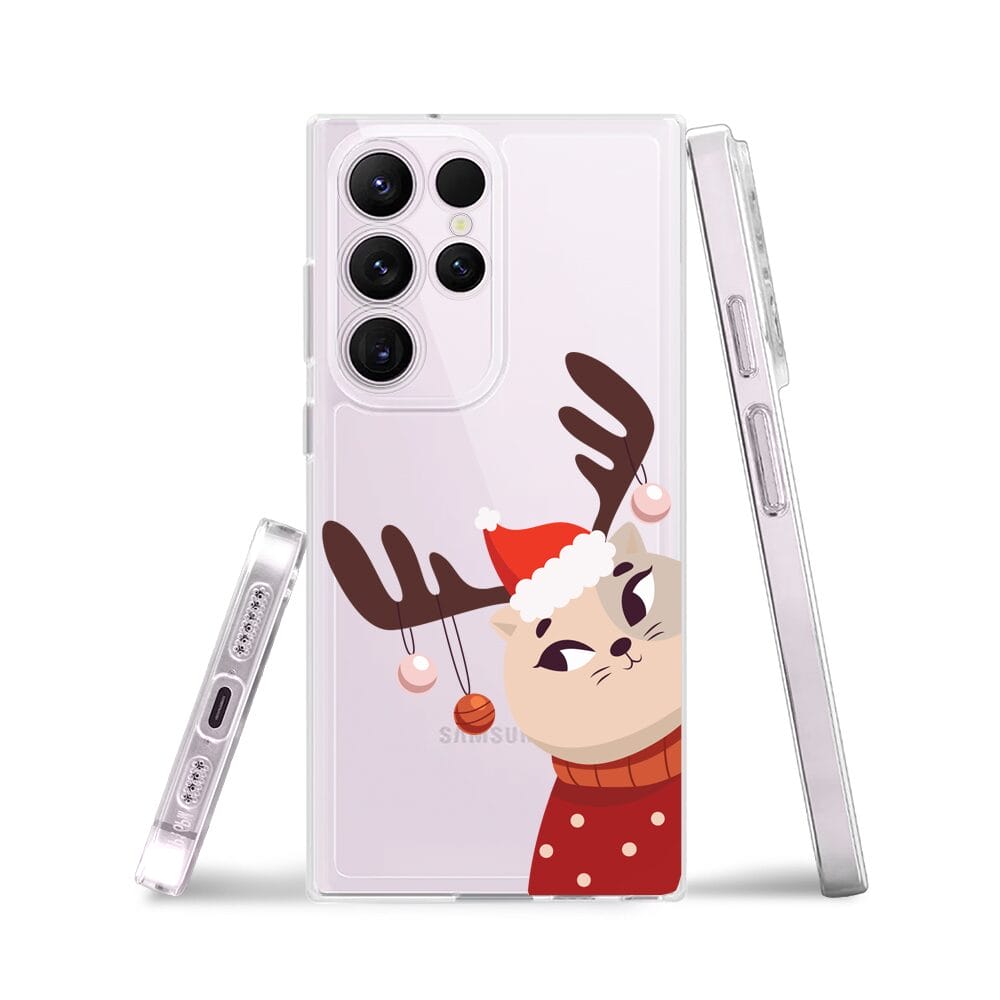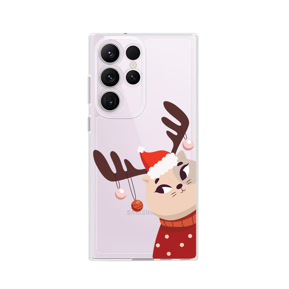 Etui do Samsung Galaxy S23 Ultra przeźroczyste, silikonowe Flexi, Kotek przebrany za reniferka