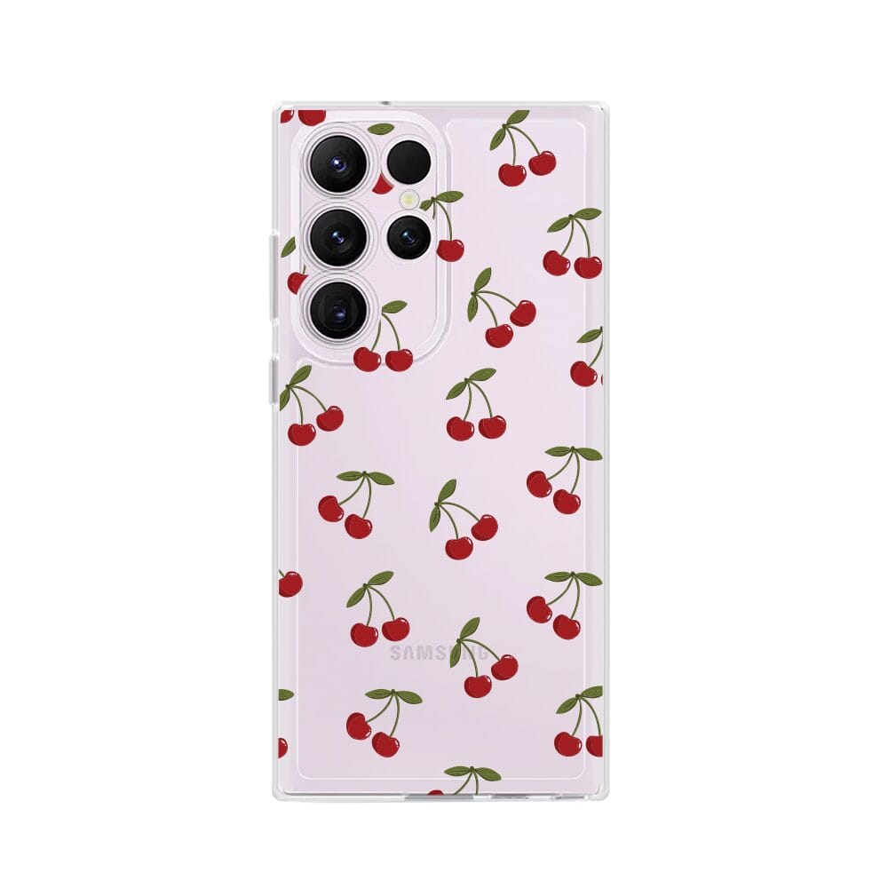 Etui do Samsung Galaxy S23 Ultra przeźroczyste, silikonowe Flexi, Mini Patterns, Wiśnie