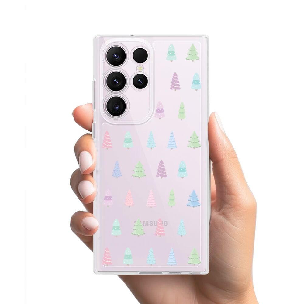 Etui do Samsung Galaxy S23 Ultra przeźroczyste, silikonowe Flexi, Pastelowe choinki