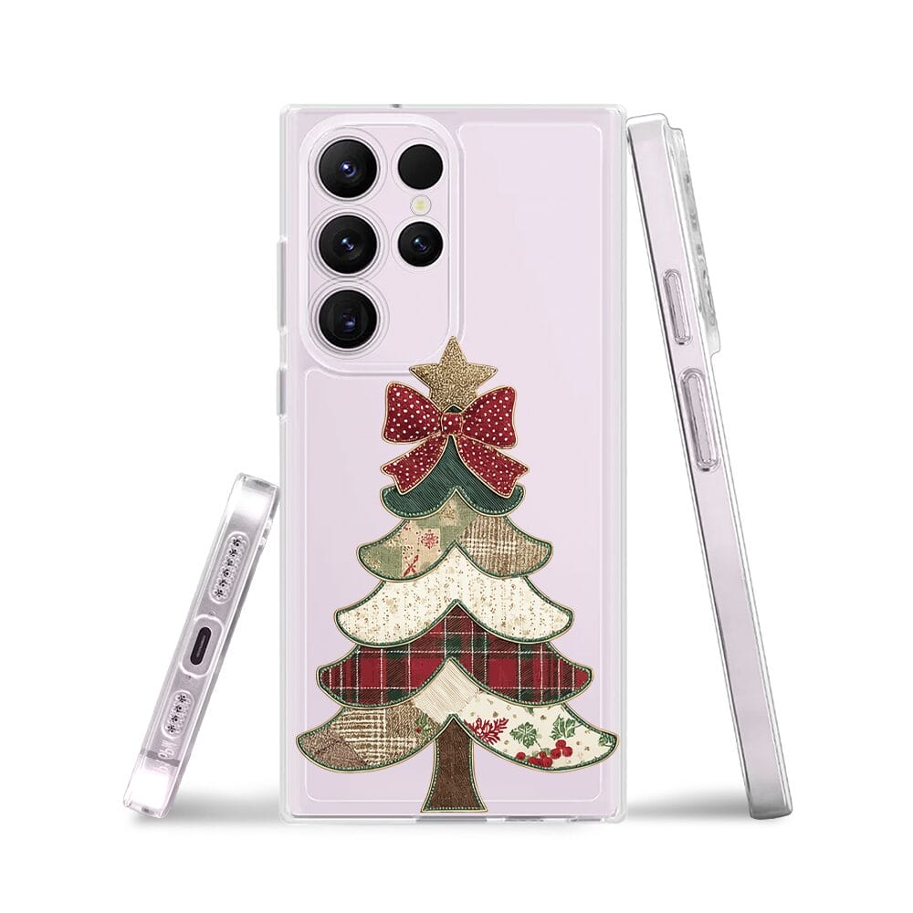 Etui do Samsung Galaxy S23 Ultra przeźroczyste, silikonowe Flexi, Przytulne święta, Kraciasta choinka