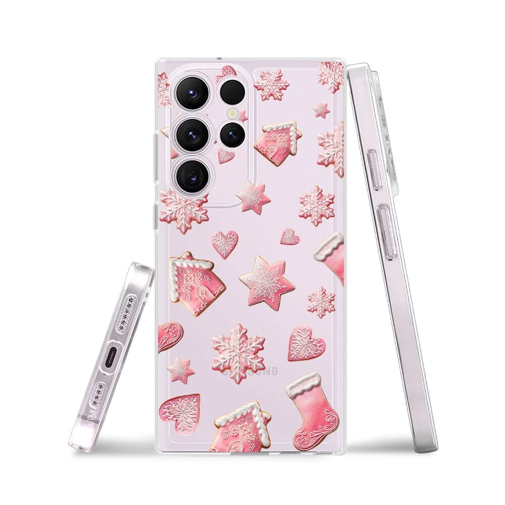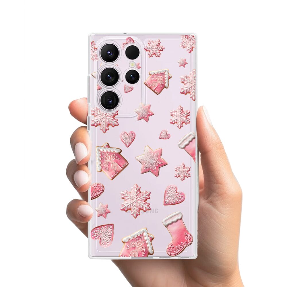 Etui do Samsung Galaxy S23 Ultra przeźroczyste, silikonowe Flexi, Przytulne święta, Różowe pierniczki