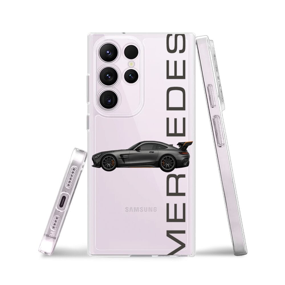 Etui do Samsung Galaxy S23 Ultra przeźroczyste, silikonowe Flexi, Szybkie Auta, Stalowe AMG-GT