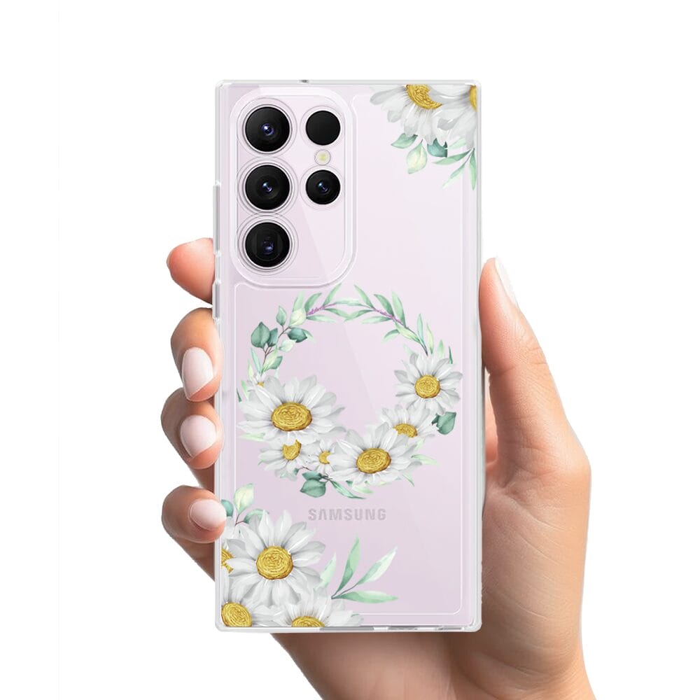 Etui do Samsung Galaxy S23 Ultra przeźroczyste, silikonowe Flexi, wianek stokrotek