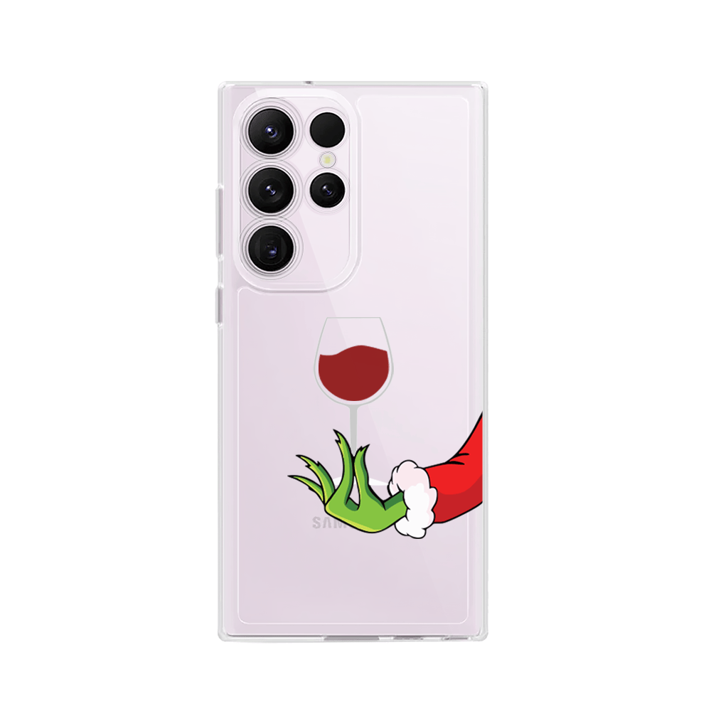 Etui do Samsung Galaxy S23 Ultra przeźroczyste, silikonowe Flexi, Zielony psotnik z lampką wina