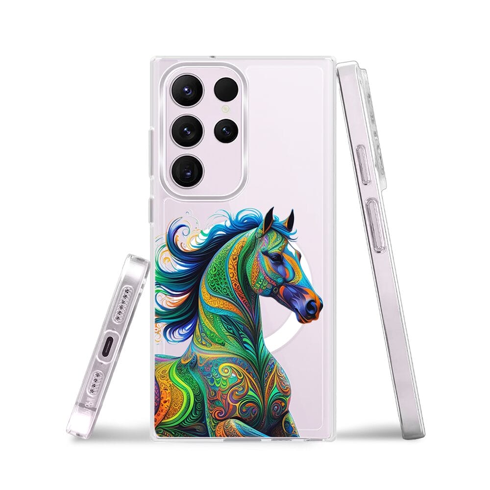 Etui do Samsung Galaxy S23 Ultra z MagSafe przeźroczyste, silikonowe Flexi, Dzika Mandala, Koń