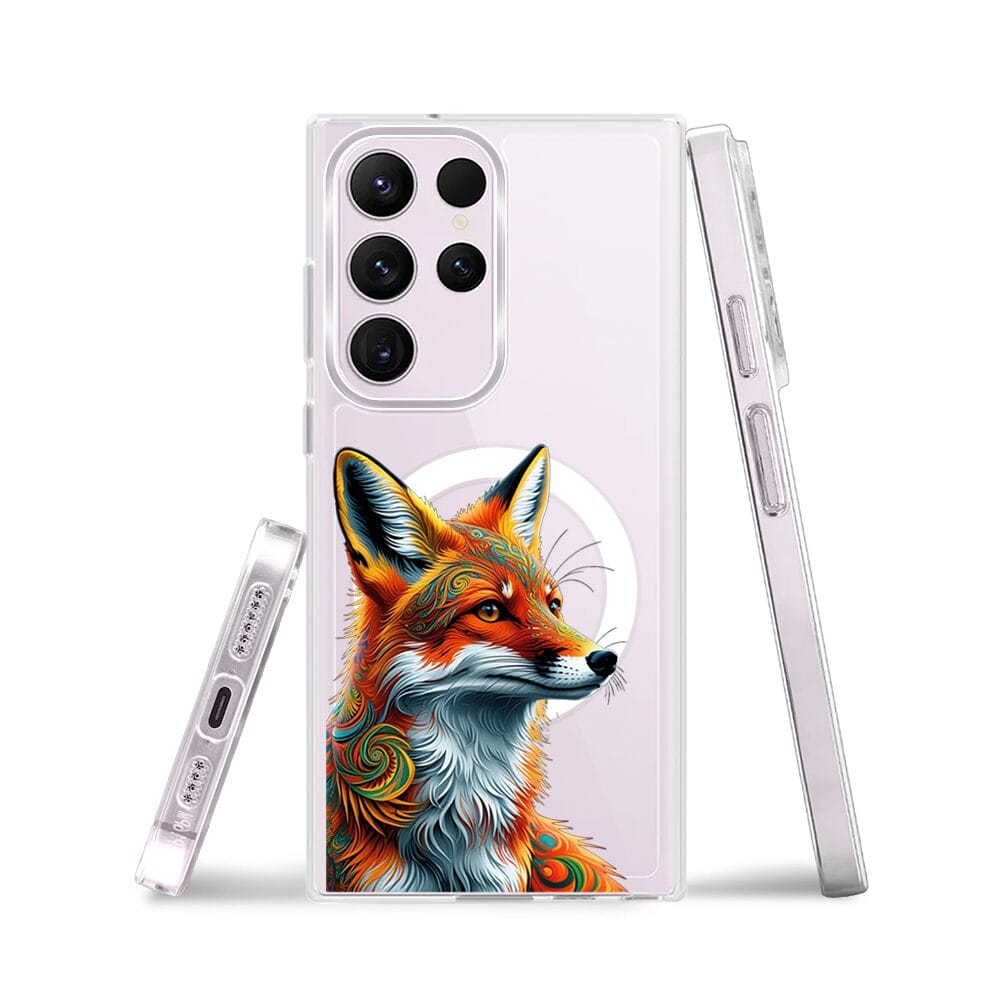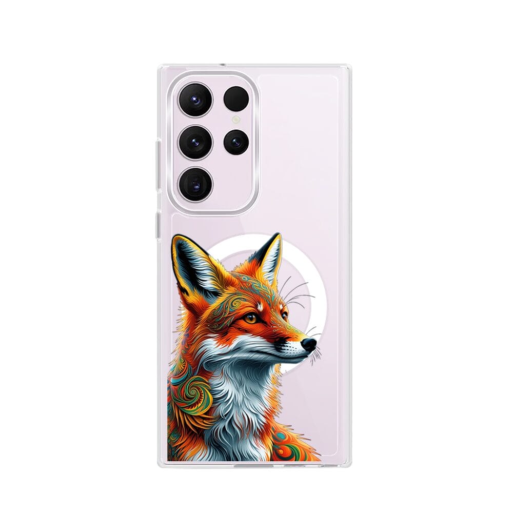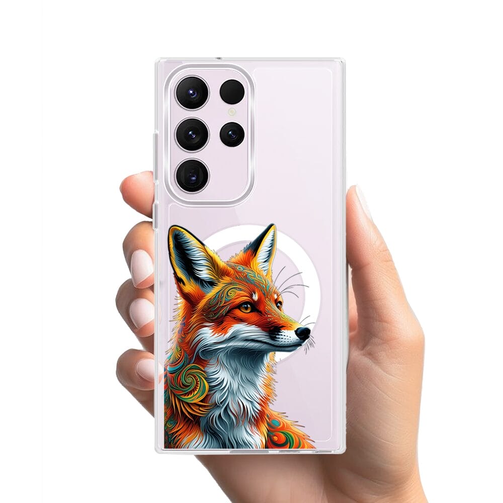Etui do Samsung Galaxy S23 Ultra z MagSafe przeźroczyste, silikonowe Flexi, Dzika Mandala, Twarz lisa