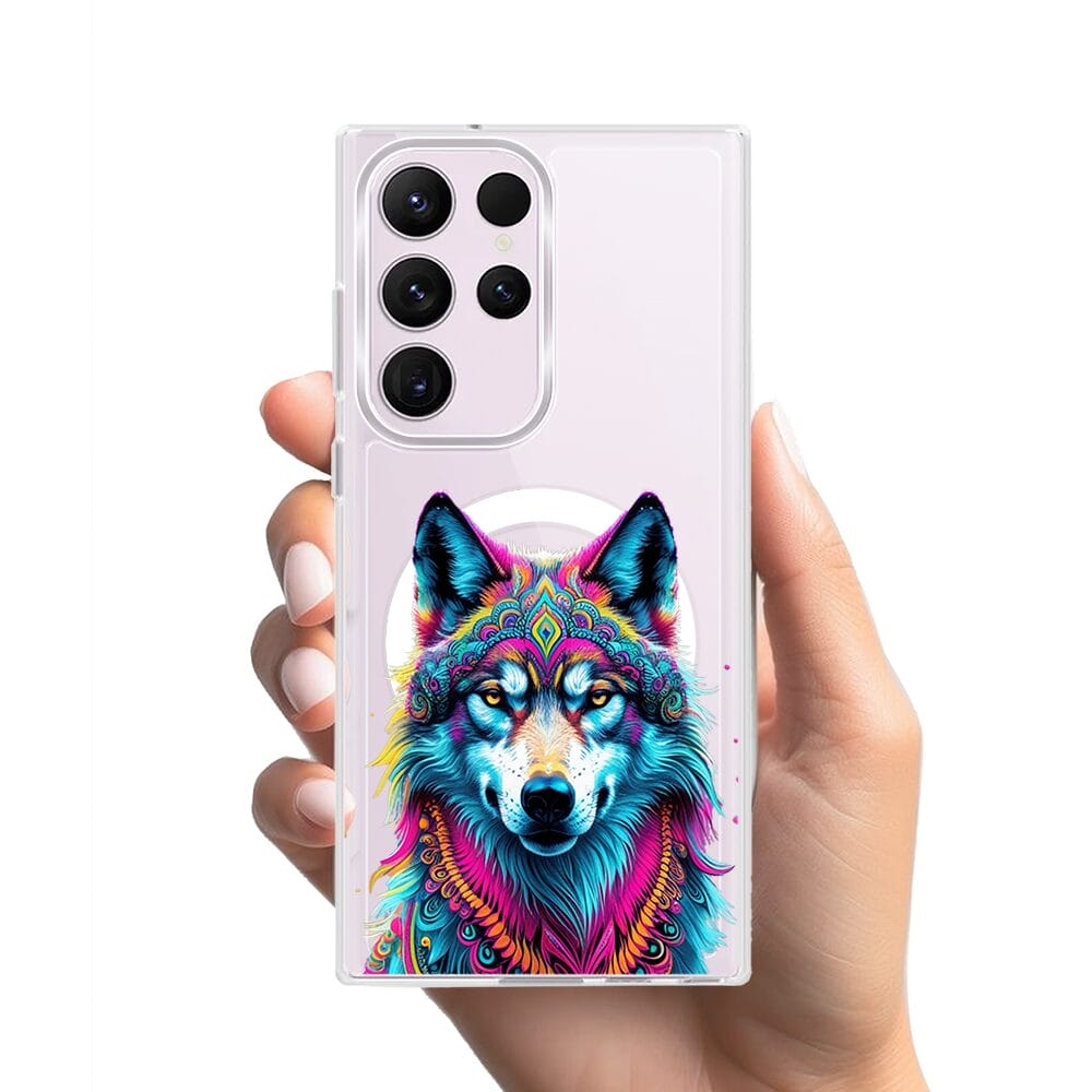 Etui do Samsung Galaxy S23 Ultra z MagSafe przeźroczyste, silikonowe Flexi, Dzika Mandala, Wilk