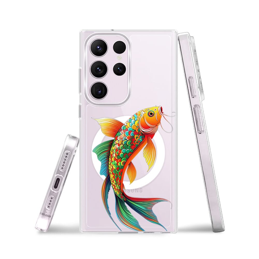 Etui do Samsung Galaxy S23 Ultra z MagSafe przeźroczyste, silikonowe Flexi, Dzika Mandala, Złota ryba