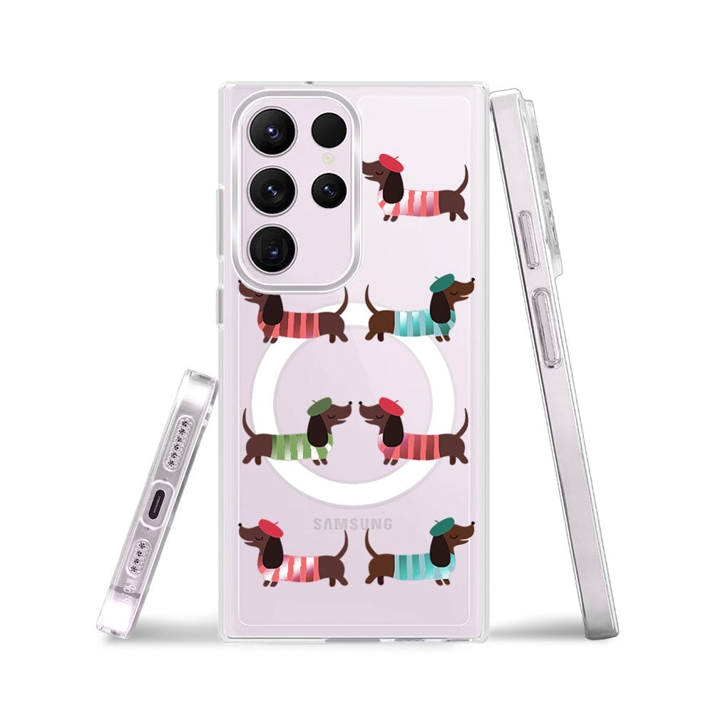 Etui do Samsung Galaxy S23 Ultra z MagSafe przeźroczyste, silikonowe Flexi, jamnik w Paryżu