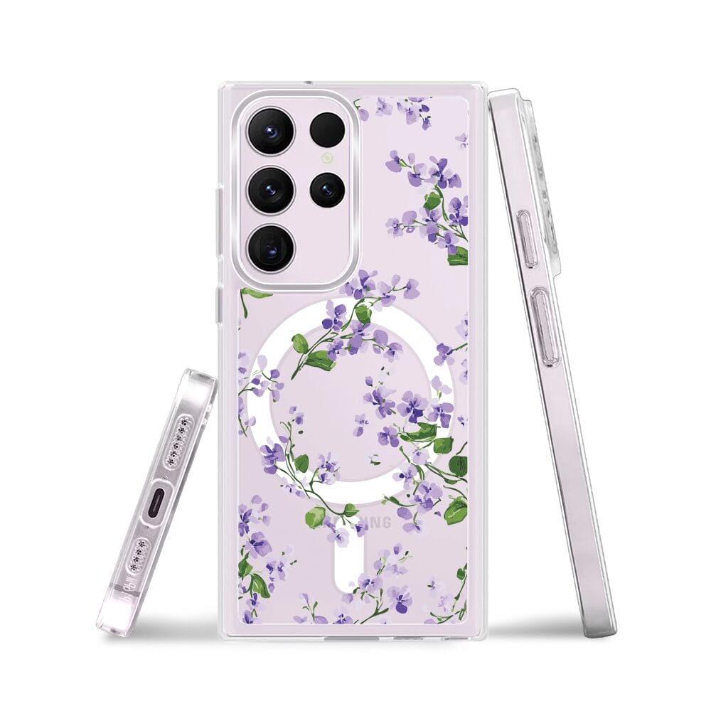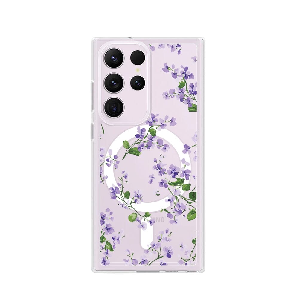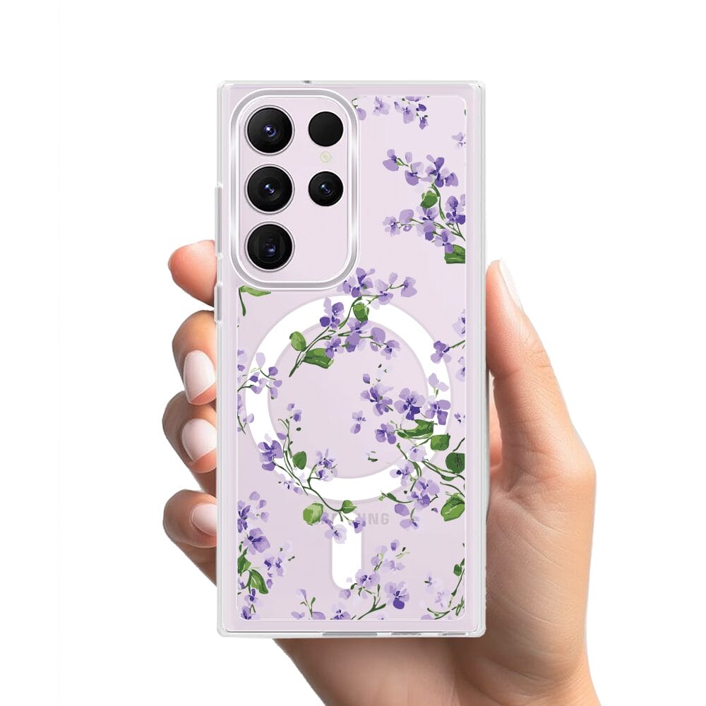 Etui do Samsung Galaxy S23 Ultra z MagSafe przeźroczyste, silikonowe Flexi, Fioletowe Bratki