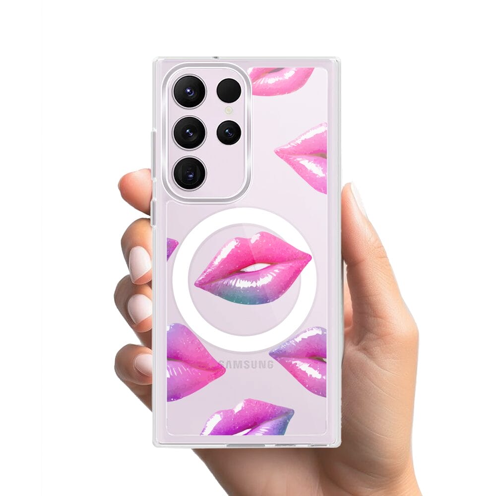 Etui do Samsung Galaxy S23 Ultra z MagSafe przeźroczyste, silikonowe Flexi, hologramowe usta