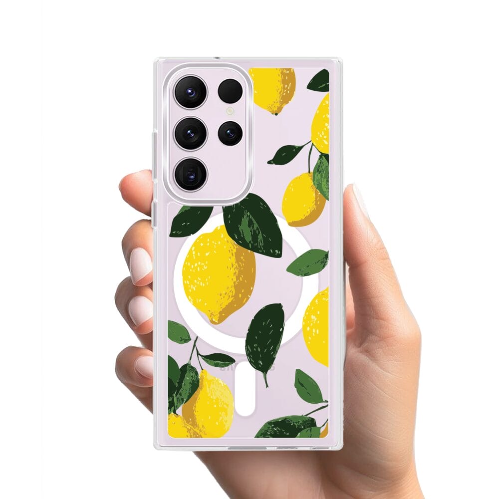 Etui do Samsung Galaxy S23 Ultra z MagSafe przeźroczyste, silikonowe Flexi, Italian Summer, Cytrynowe