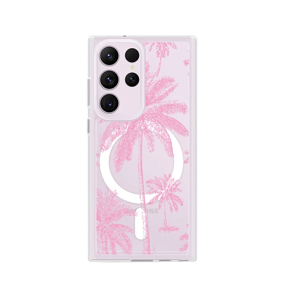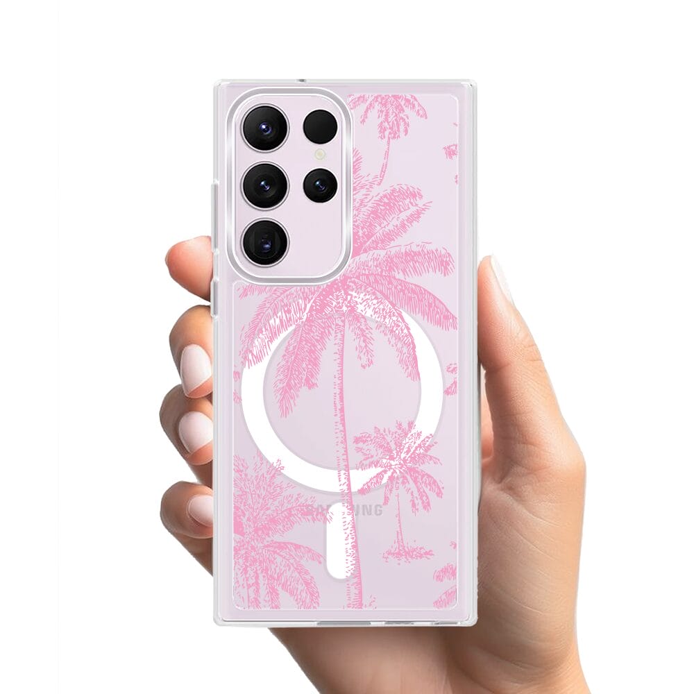 Etui do Samsung Galaxy S23 Ultra z MagSafe przeźroczyste, silikonowe Flexi, Mystic, Różowe palmy