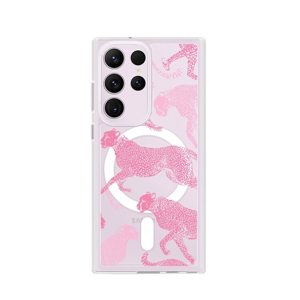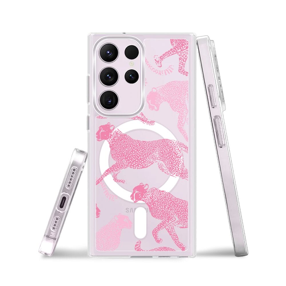 Etui do Samsung Galaxy S23 Ultra z MagSafe przeźroczyste, silikonowe Flexi, Mystic, Różowe pumy