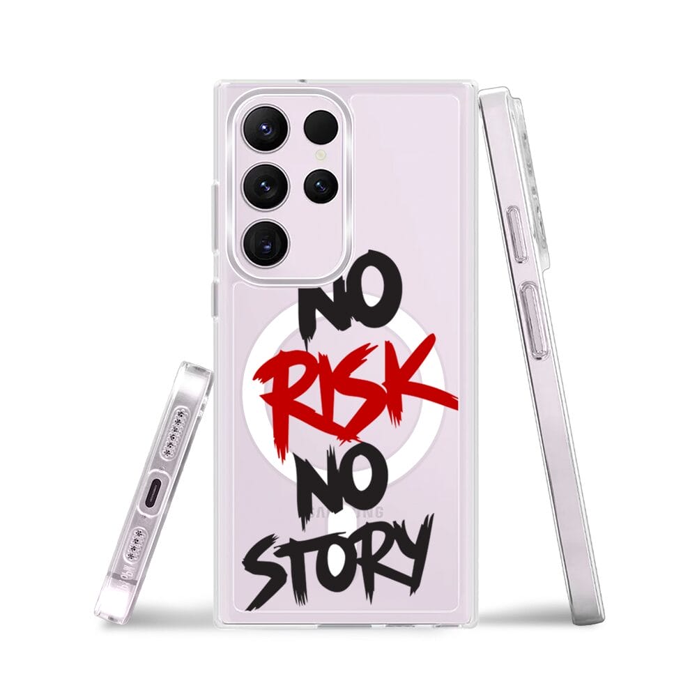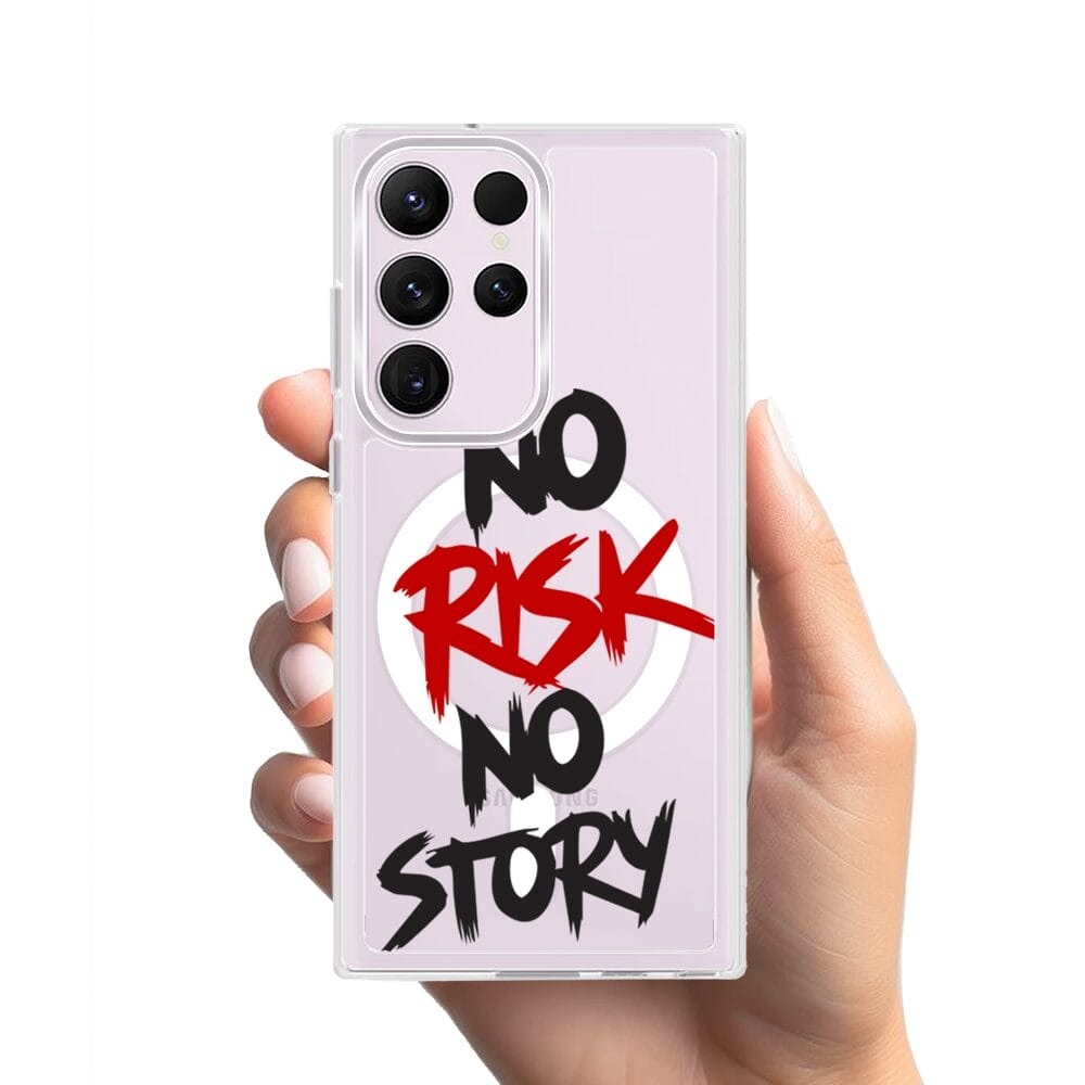 Etui do Samsung Galaxy S23 Ultra z MagSafe przeźroczyste, silikonowe Flexi, Positive Vibes, No Risk No Story