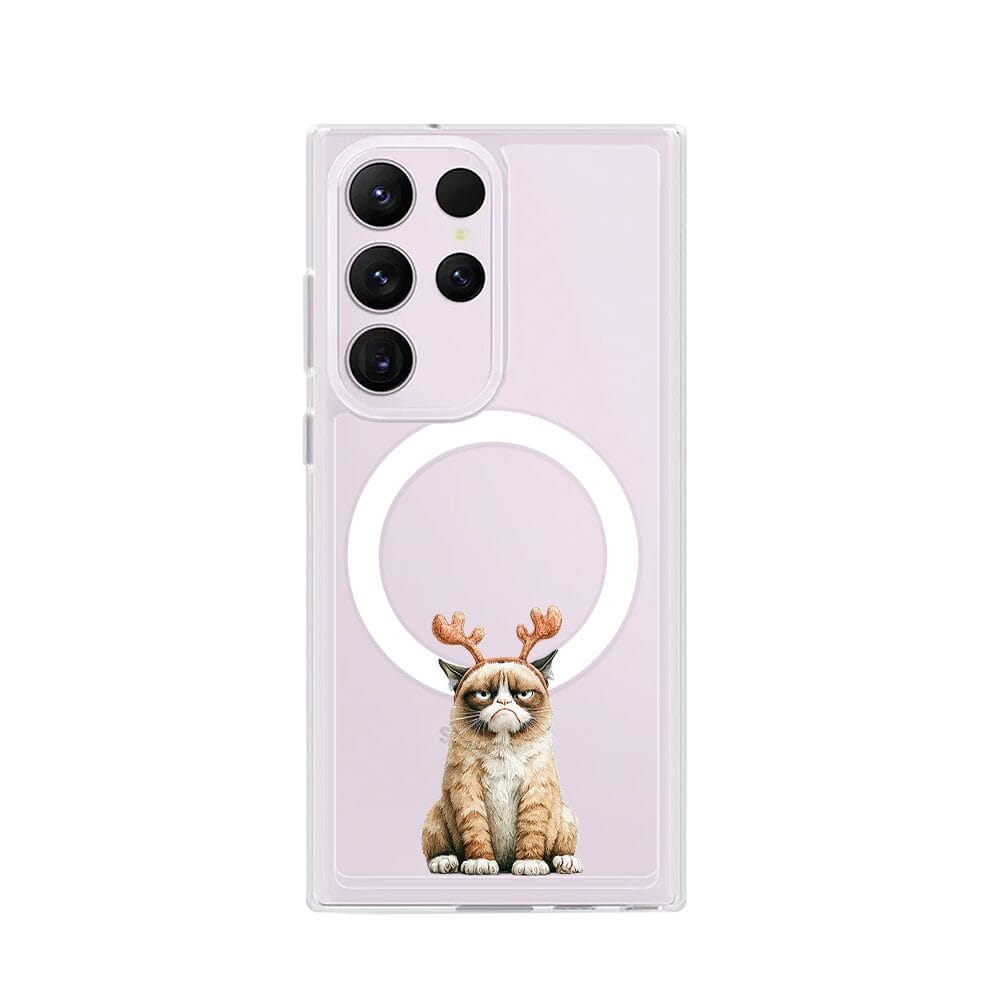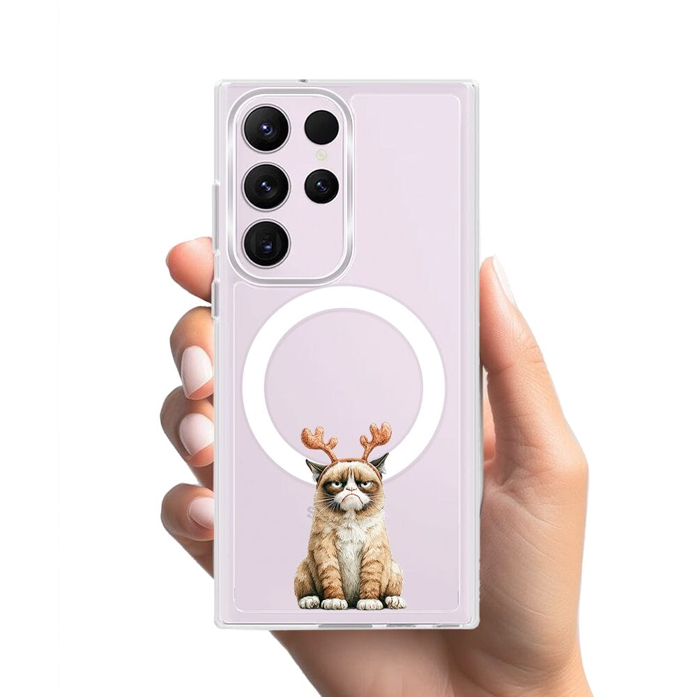 Etui do Samsung Galaxy S23 Ultra z MagSafe przeźroczyste, silikonowe Flexi, Przytulne święta, Kot który nie chciał być reniferem