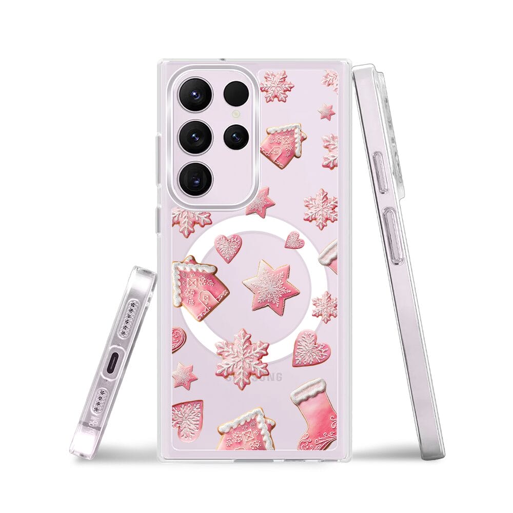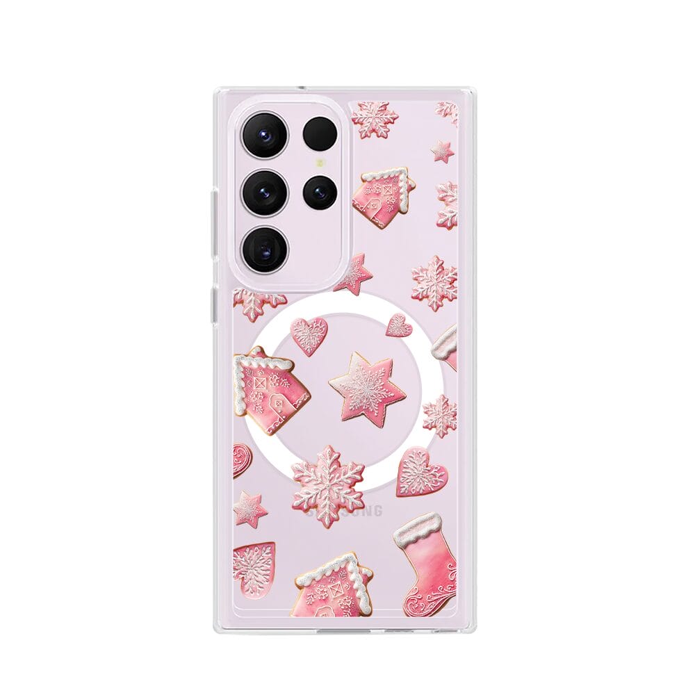 Etui do Samsung Galaxy S23 Ultra z MagSafe przeźroczyste, silikonowe Flexi, Przytulne święta, Różowe pierniczki