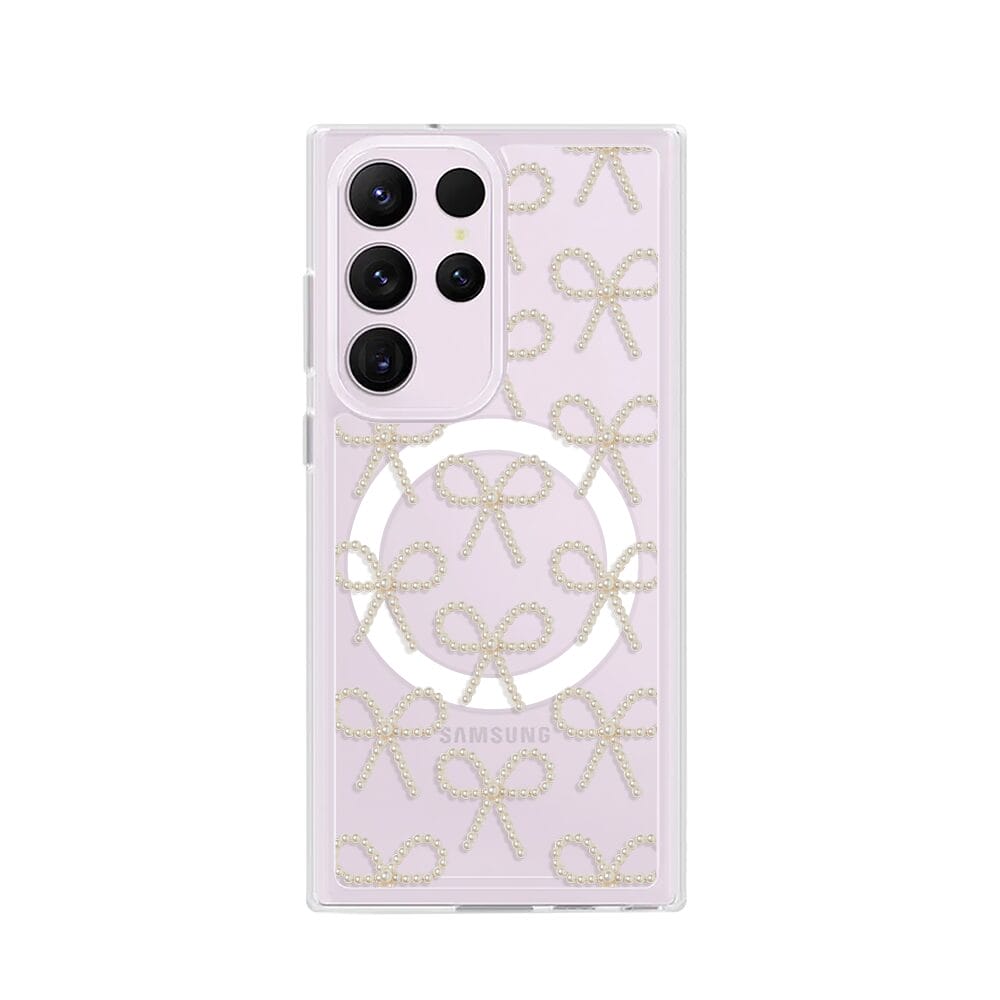 Etui do Samsung Galaxy S23 Ultra z MagSafe przeźroczyste, silikonowe Flexi, Przytulne święta, złote kokardki