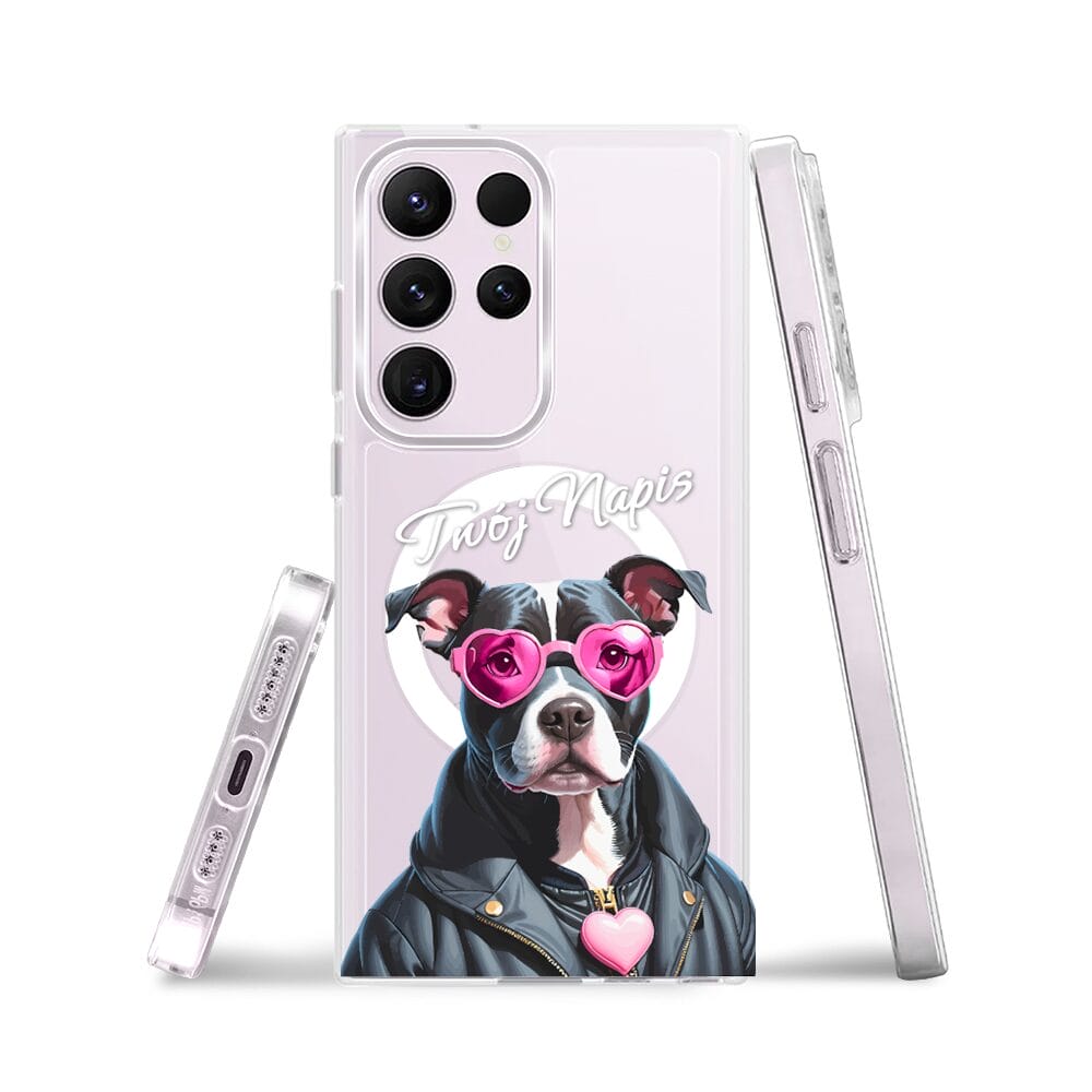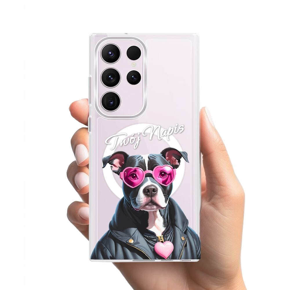 Etui do Samsung Galaxy S23 Ultra z MagSafe przeźroczyste, silikonowe Flexi, Puppy Love, pies rasy Amstaff