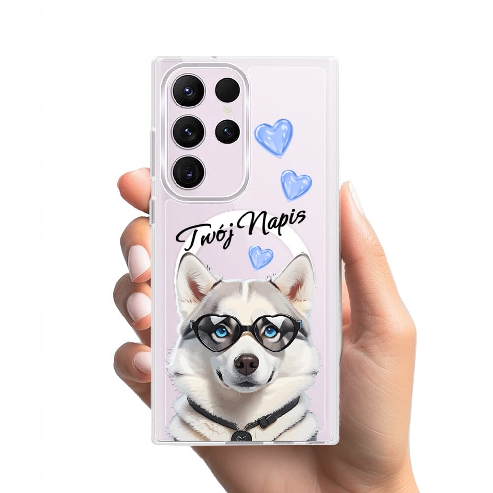 Etui do Samsung Galaxy S23 Ultra z MagSafe przeźroczyste, silikonowe Flexi, Puppy Love, pies rasy Husky