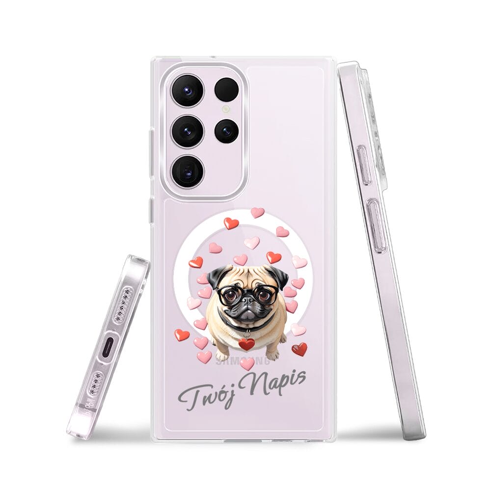 Etui do Samsung Galaxy S23 Ultra z MagSafe przeźroczyste, silikonowe Flexi, Puppy Love, pies rasy Mops