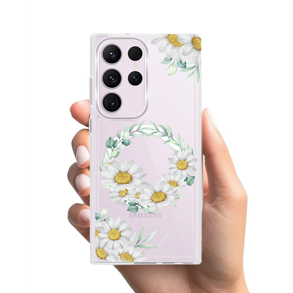 Etui do Samsung Galaxy S23 Ultra z MagSafe przeźroczyste, silikonowe Flexi, wianek stokrotek