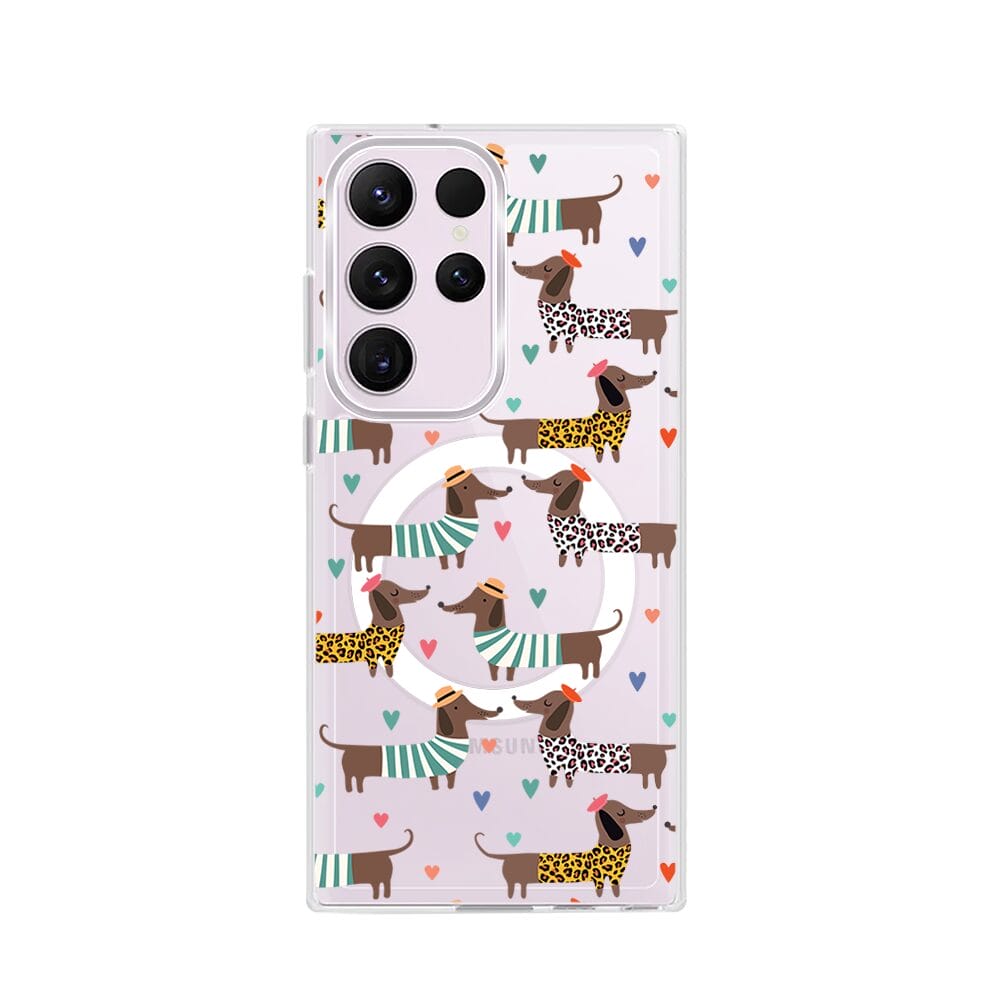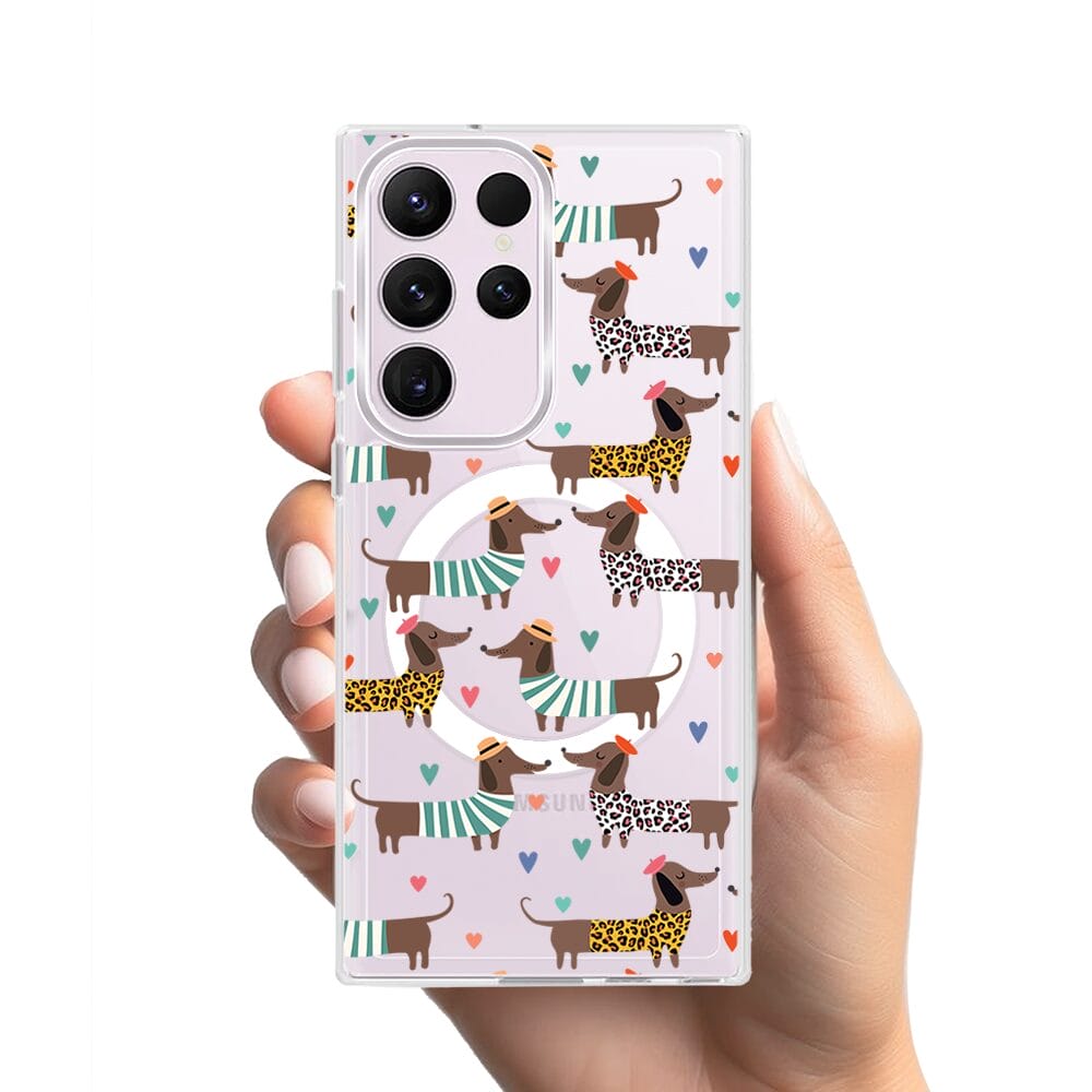 Etui do Samsung Galaxy S23 Ultra z MagSafe przeźroczyste, silikonowe Flexi, zakochane jamniki