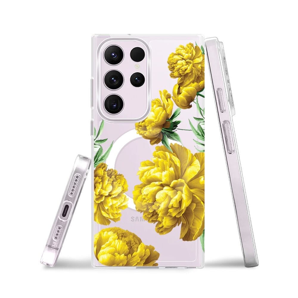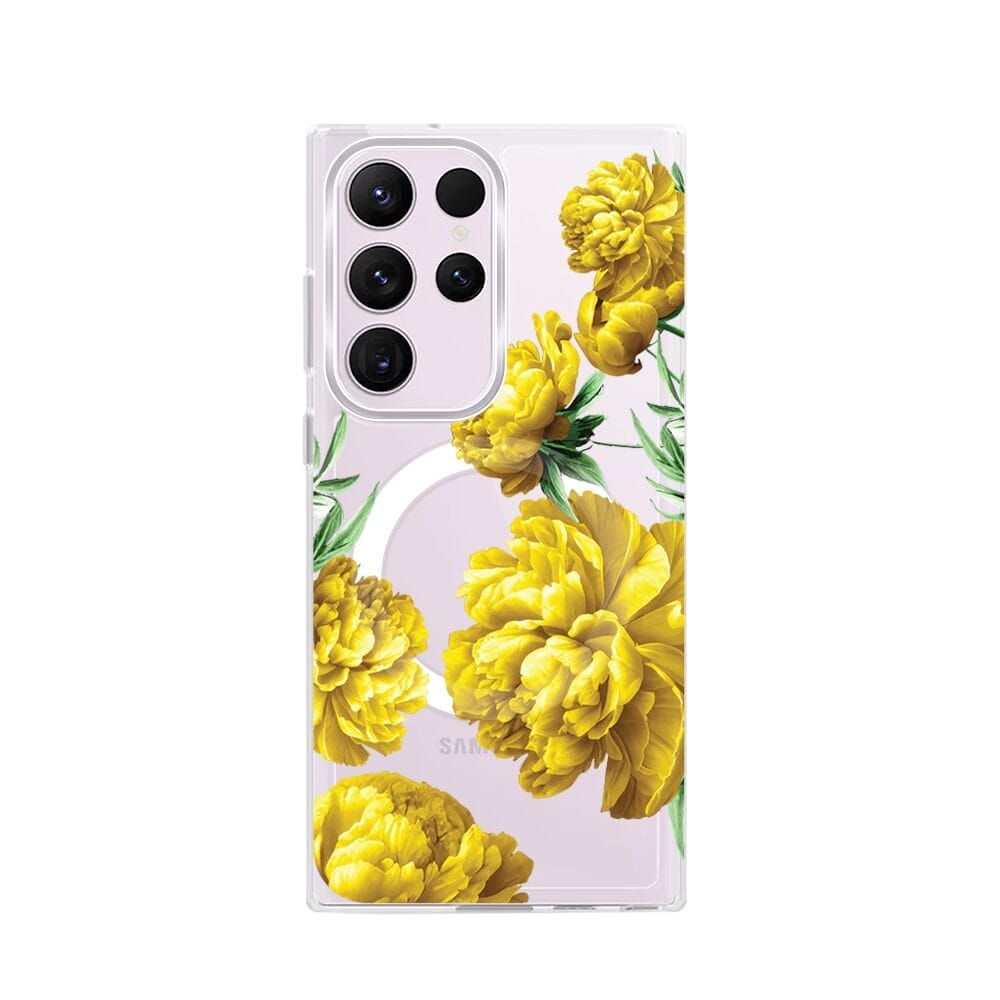 Etui do Samsung Galaxy S23 Ultra z MagSafe przeźroczyste, silikonowe Flexi, żółte piwonie