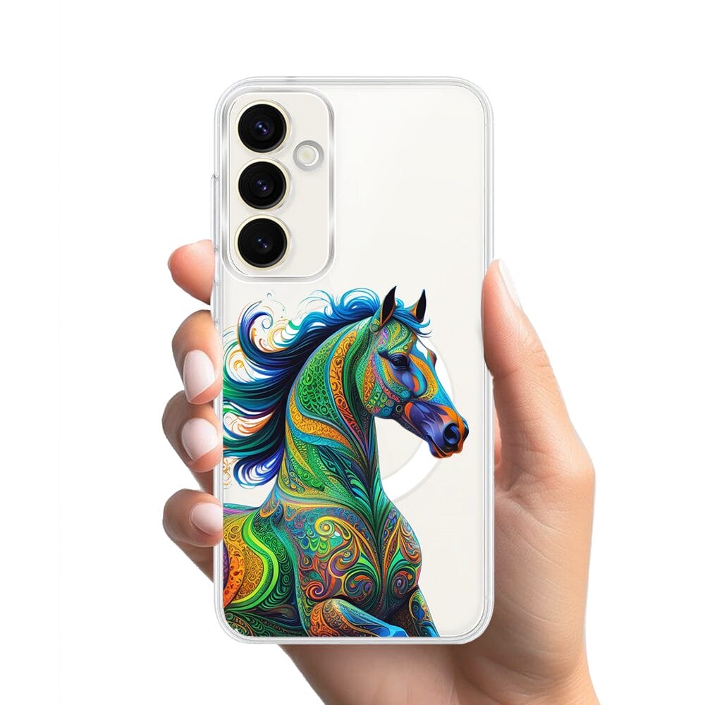 Etui do Samsung Galaxy S23 z MagSafe przeźroczyste, silikonowe Flexi, Dzika Mandala, Koń