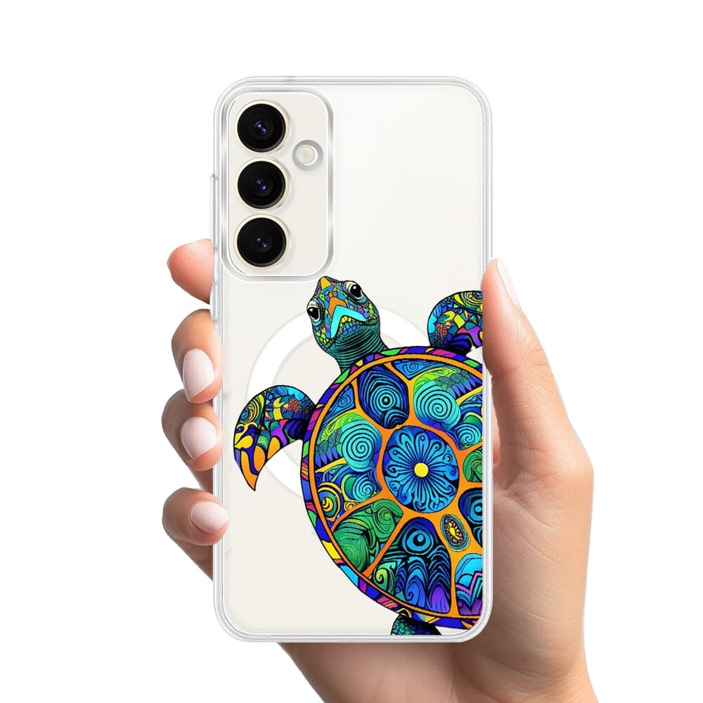Etui do Samsung Galaxy S23 z MagSafe przeźroczyste, silikonowe Flexi, Dzika Mandala, Żółw