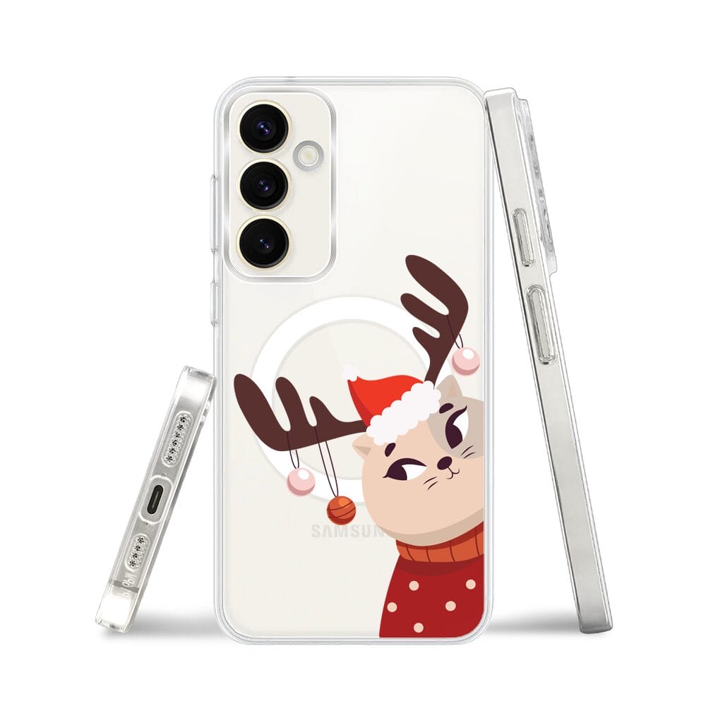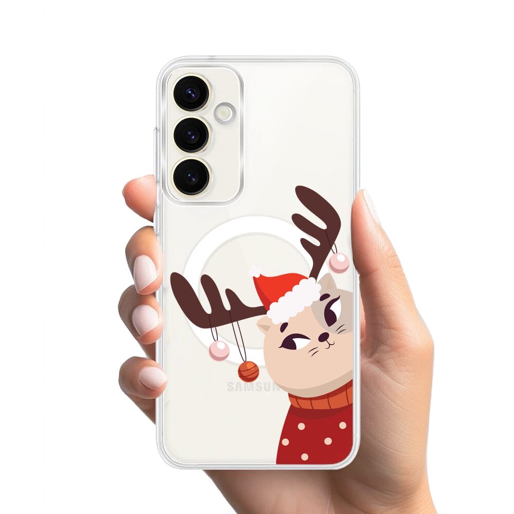 Etui do Samsung Galaxy S23 z MagSafe przeźroczyste, silikonowe Flexi, Kotek przebrany za reniferka