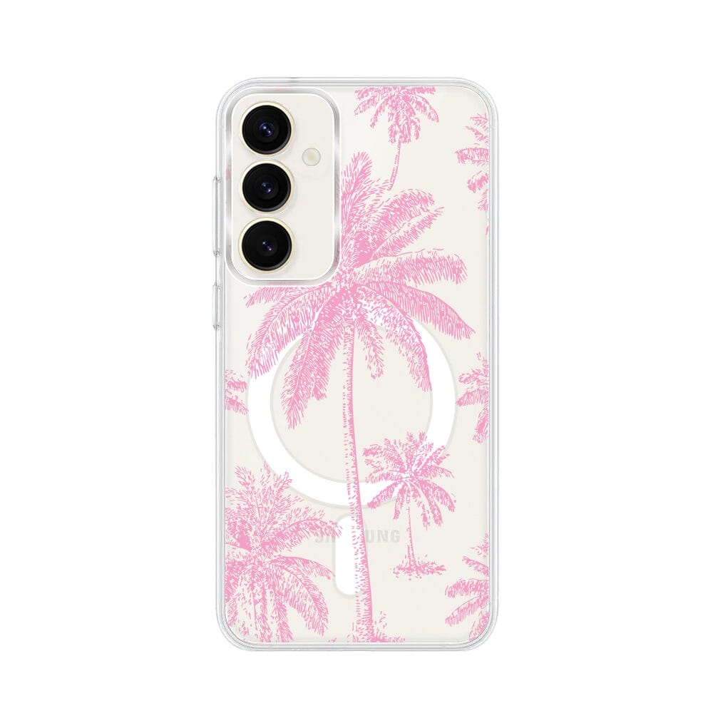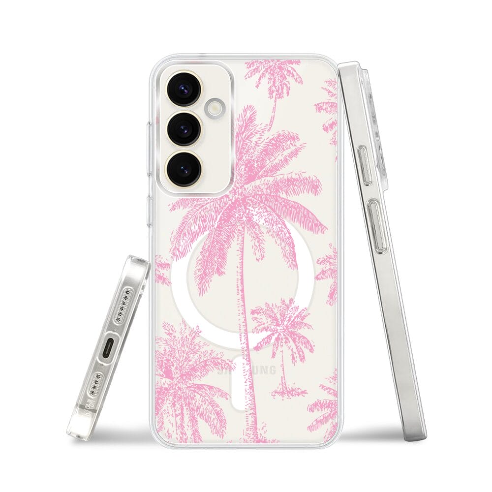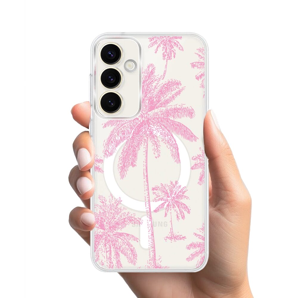 Etui do Samsung Galaxy S23 z MagSafe przeźroczyste, silikonowe Flexi, Mystic, Różowe palmy