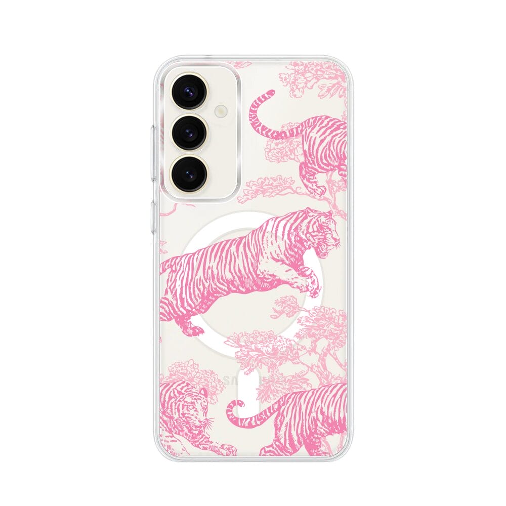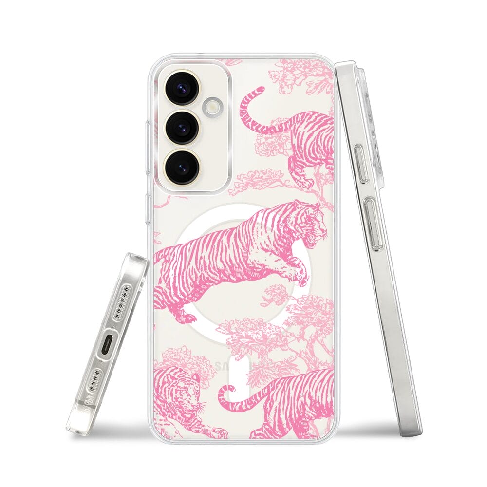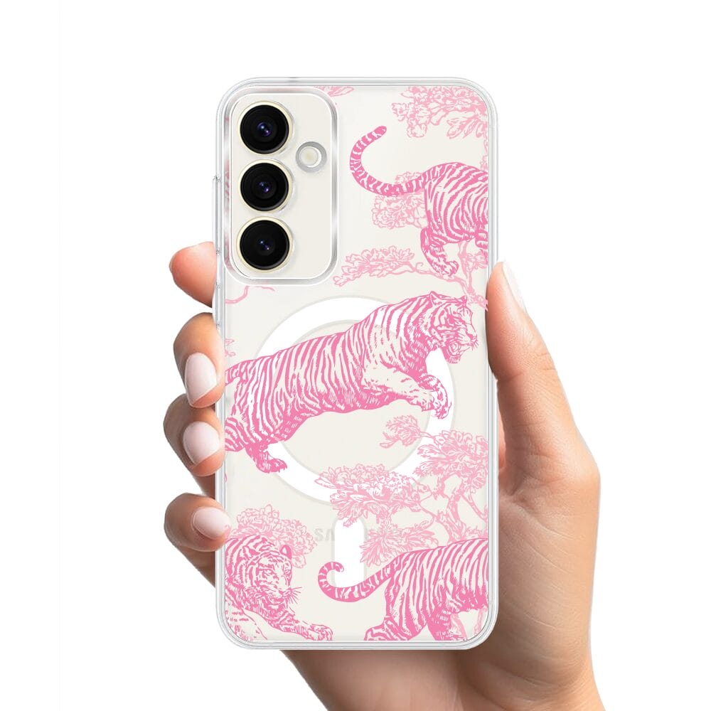 Etui do Samsung Galaxy S23 z MagSafe przeźroczyste, silikonowe Flexi, Mystic, Różowe tygrysy