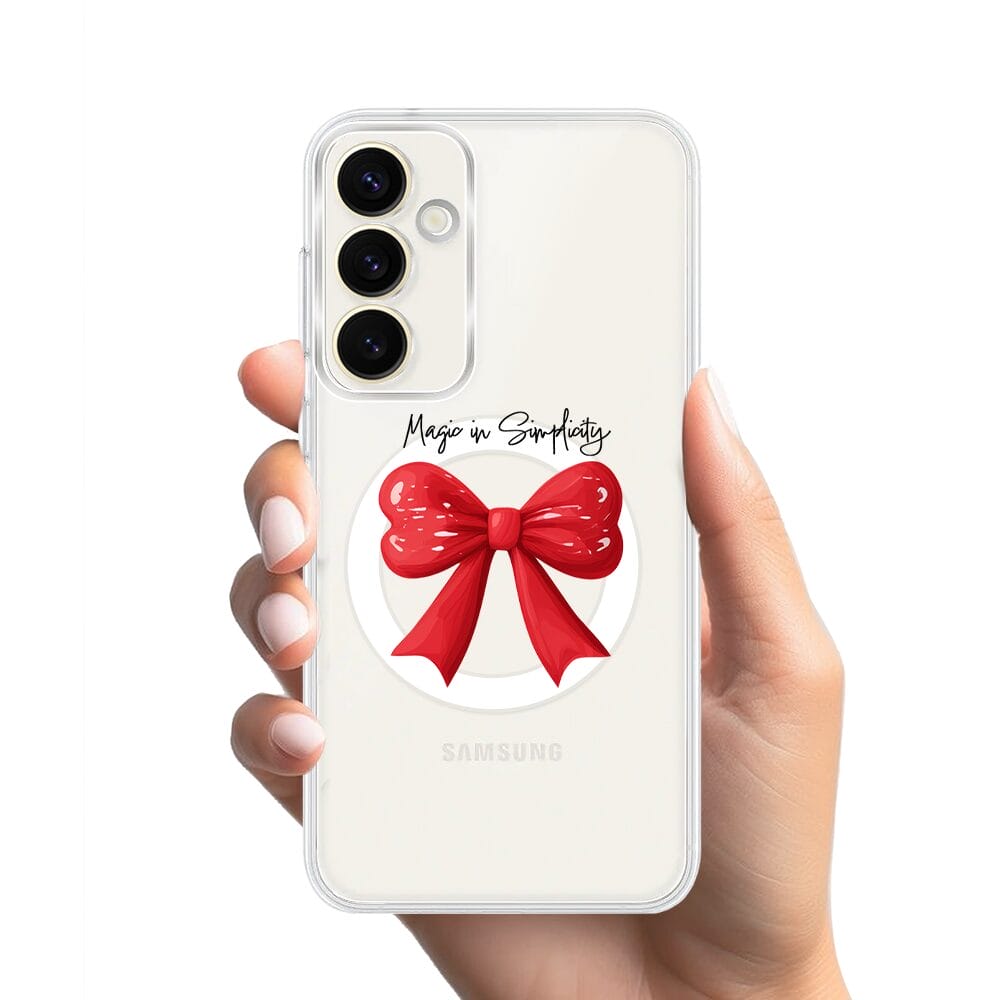 Etui do Samsung Galaxy S23 z MagSafe przeźroczyste, silikonowe Flexi, Przytulne święta, Czerwona kokarda