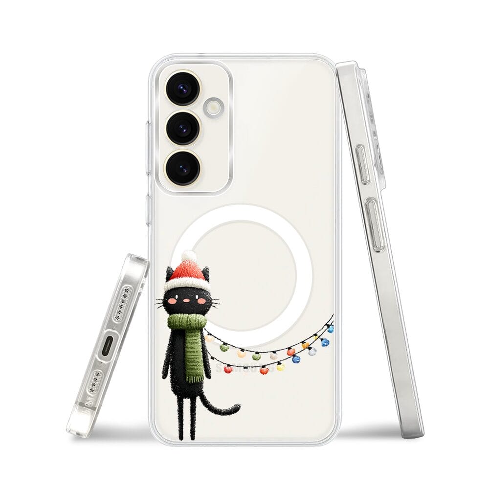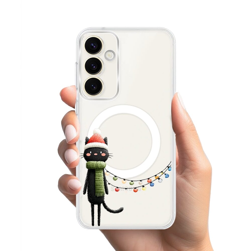 Etui do Samsung Galaxy S23 z MagSafe przeźroczyste, silikonowe Flexi, Przytulne święta, Kot przebrany za elfa