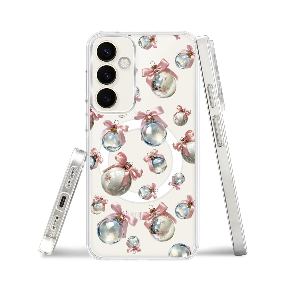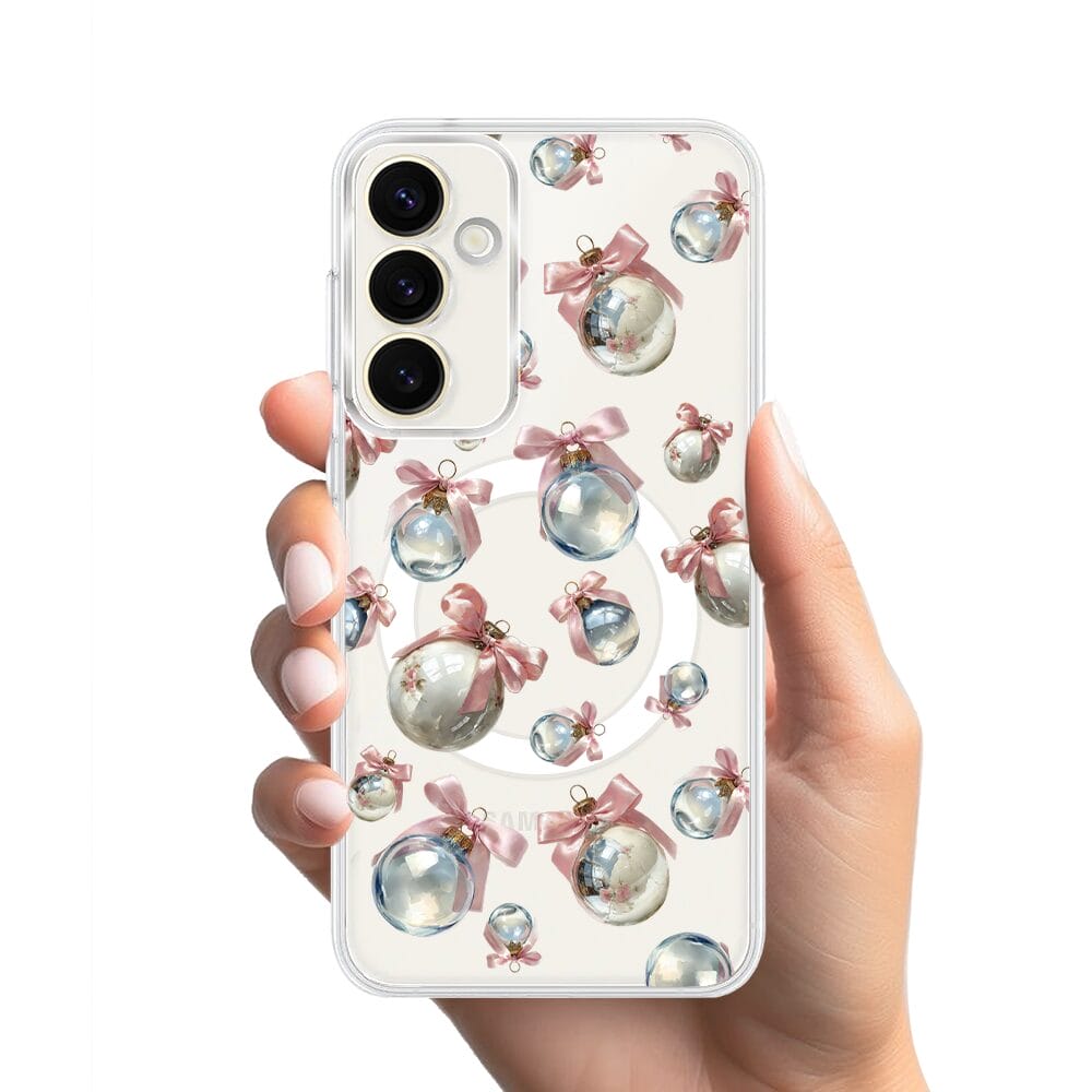 Etui do Samsung Galaxy S23 z MagSafe przeźroczyste, silikonowe Flexi, Przytulne święta, Pastelowe bombki