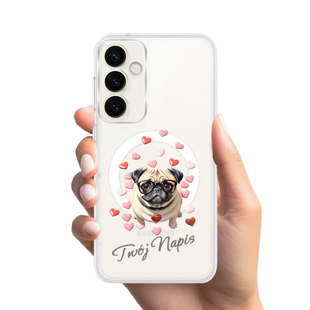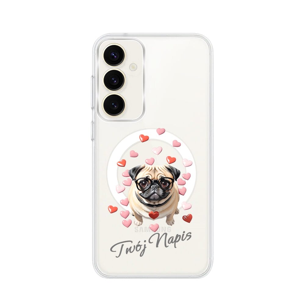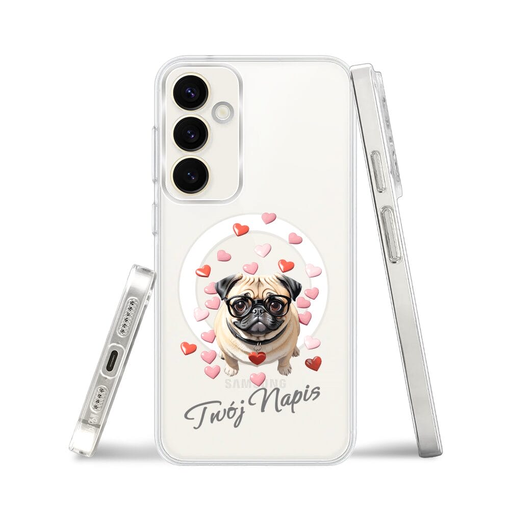 Etui do Samsung Galaxy S23 z MagSafe przeźroczyste, silikonowe Flexi, Puppy Love, pies rasy Mops