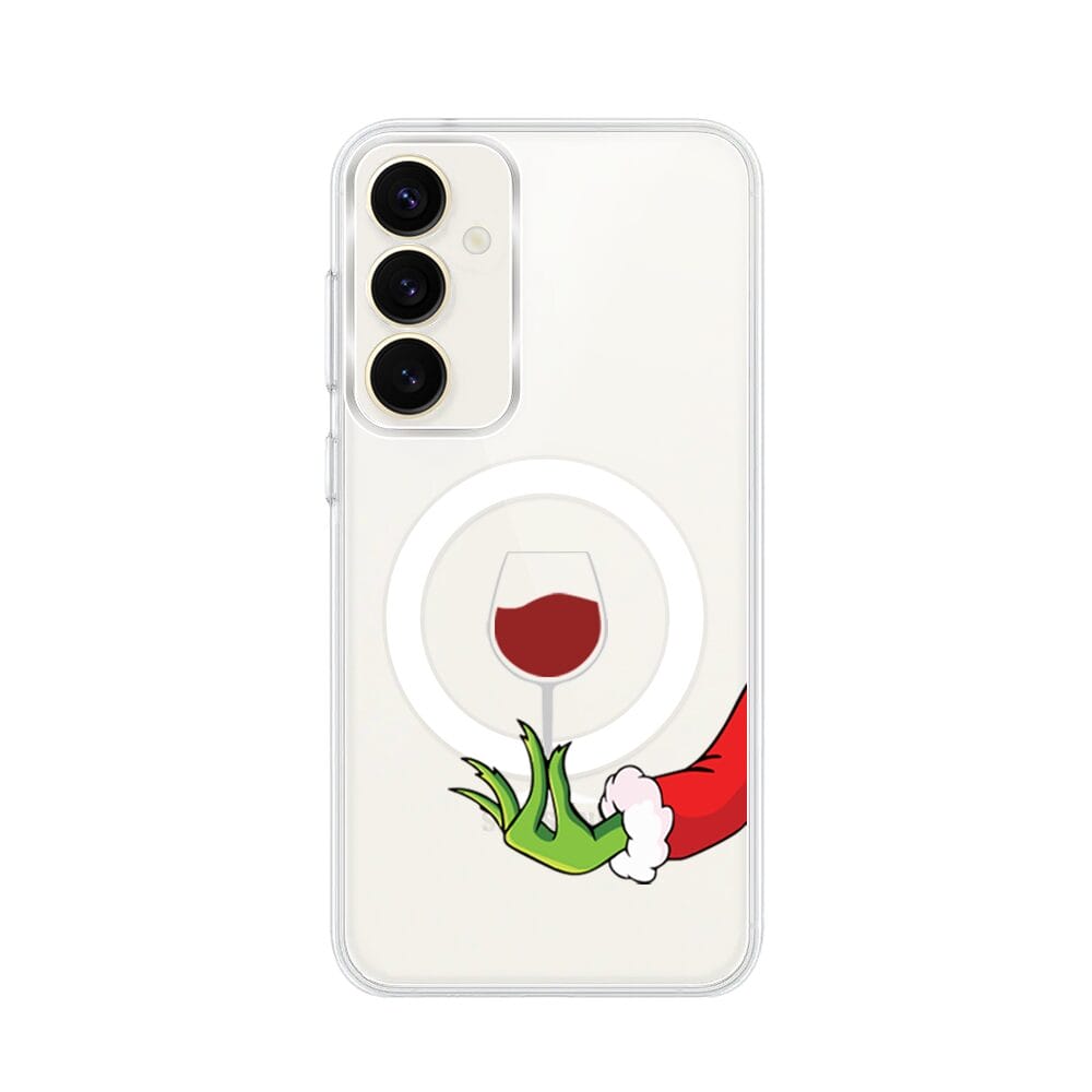 Etui do Samsung Galaxy S23 z MagSafe przeźroczyste, silikonowe Flexi, Zielony psotnik z lampką wina