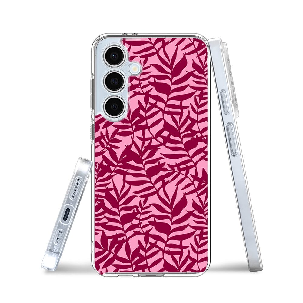 Etui do Samsung Galaxy S24 FE przeźroczyste, silikonowe Flexi, bordowe liście