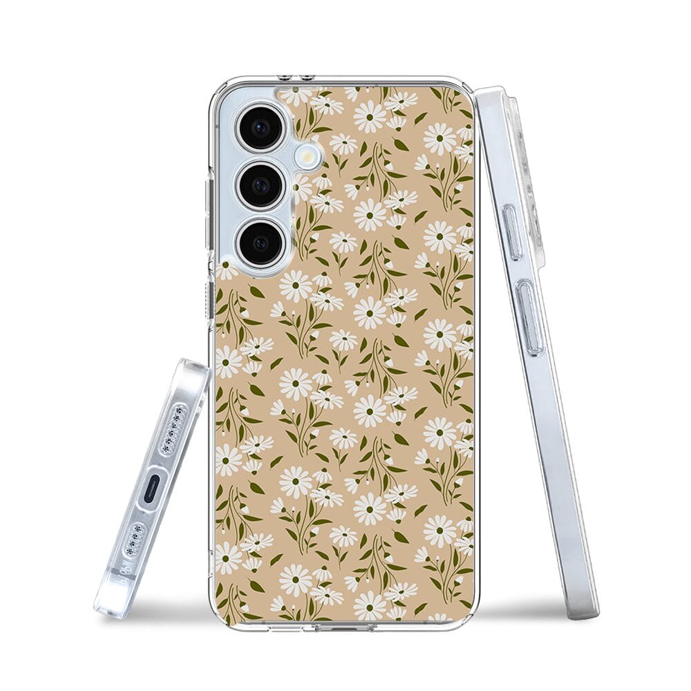 Etui do Samsung Galaxy S24 FE przeźroczyste, silikonowe Flexi, delikatne kwiatki na cielistym tle