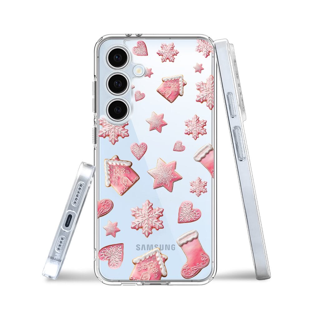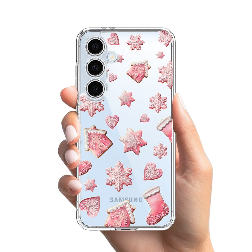 Etui do Samsung Galaxy S24 FE przeźroczyste, silikonowe Flexi, Przytulne święta, Różowe pierniczki