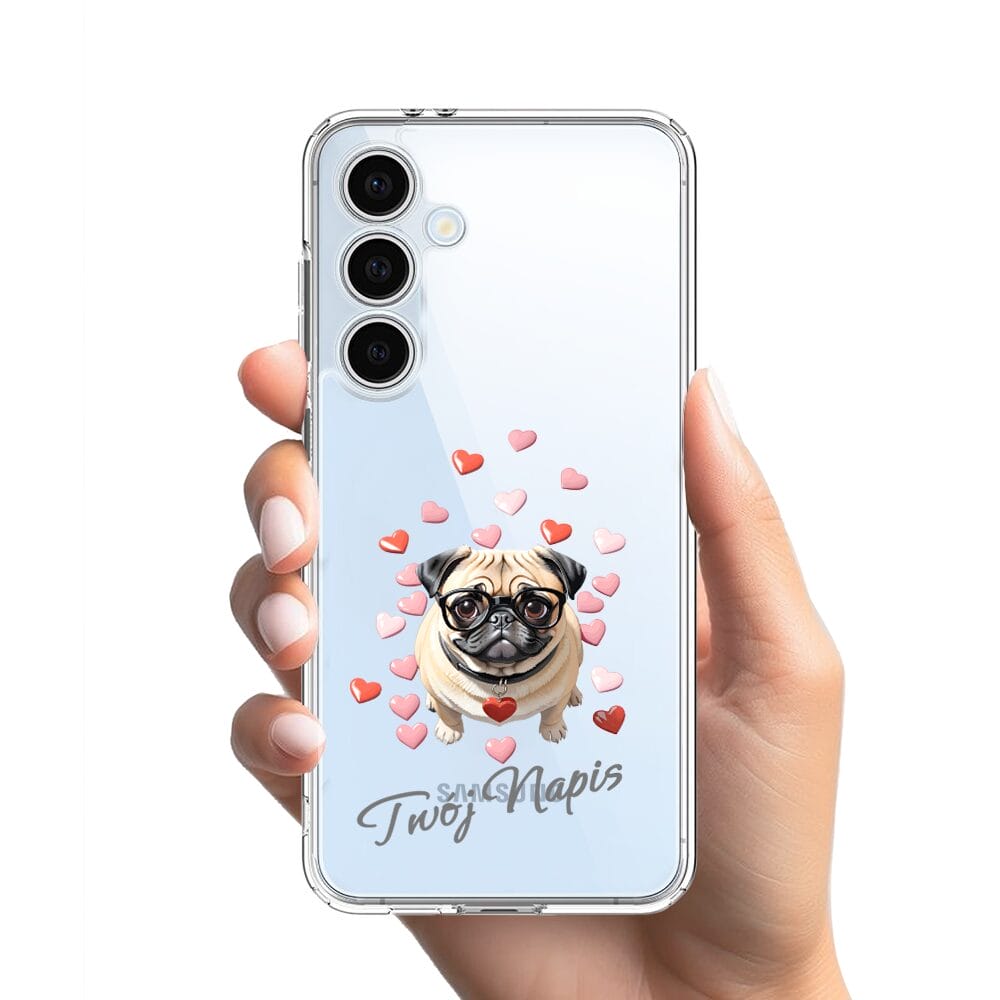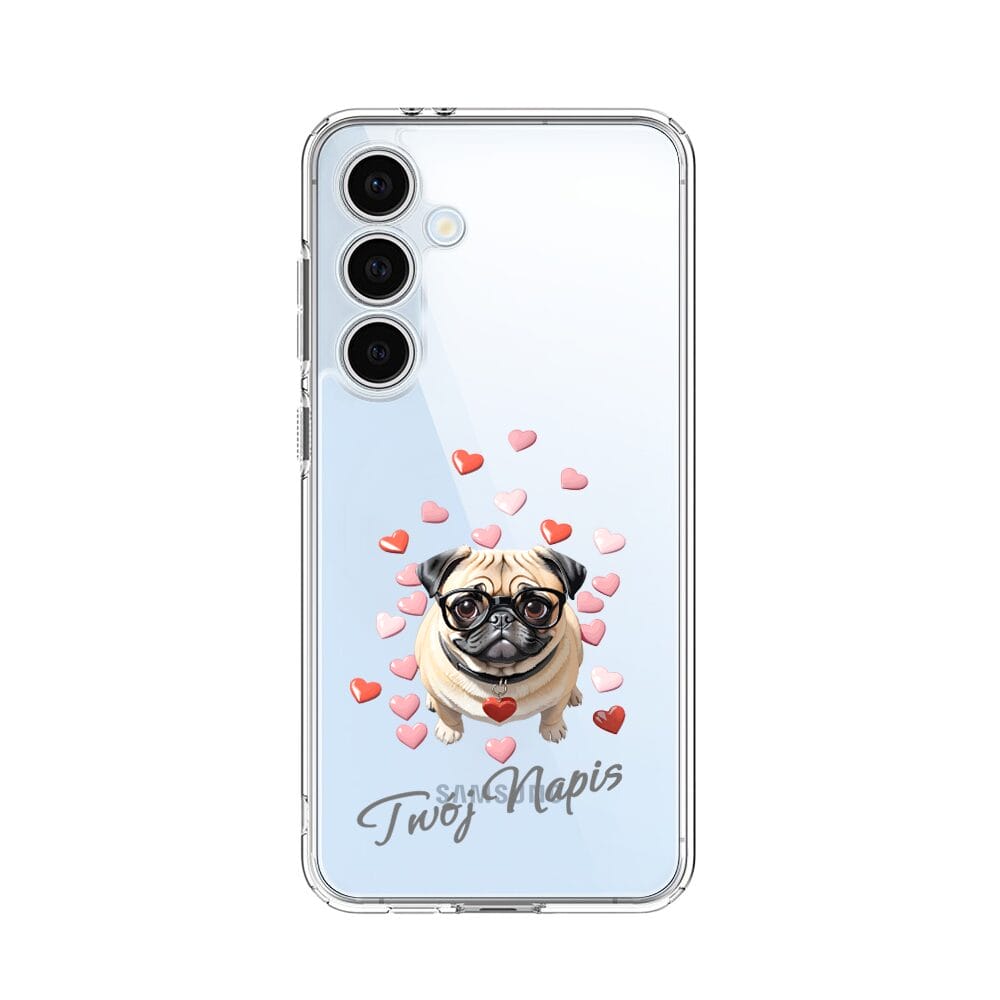 Etui do Samsung Galaxy S24 FE przeźroczyste, silikonowe Flexi, Puppy Love, pies rasy Mops