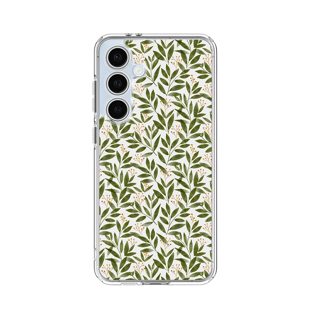 Etui do Samsung Galaxy S24 FE przeźroczyste, silikonowe Flexi, zielone gałązki