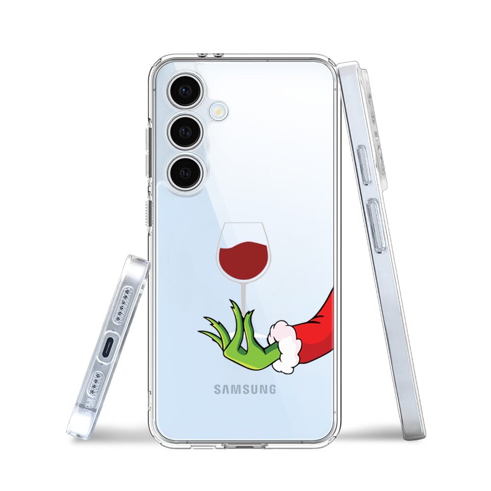 Etui do Samsung Galaxy S24 FE przeźroczyste, silikonowe Flexi, Zielony psotnik z lampką wina