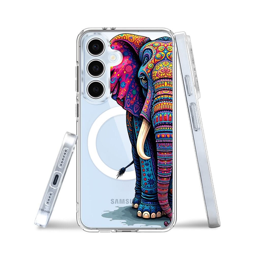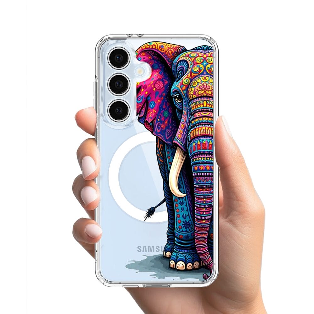 Etui do Samsung Galaxy S24 FE z MagSafe przeźroczyste, silikonowe Flexi, Dzika Mandala, Słoń
