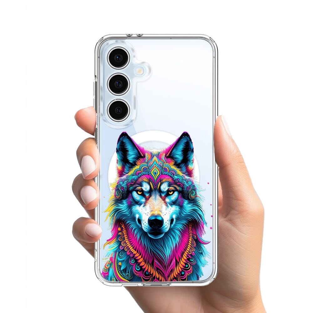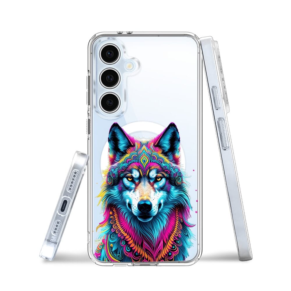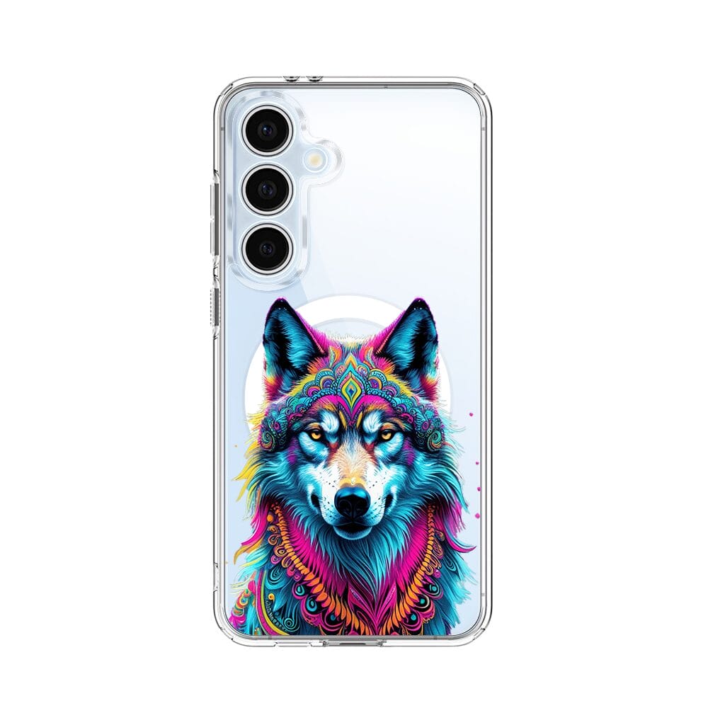 Etui do Samsung Galaxy S24 FE z MagSafe przeźroczyste, silikonowe Flexi, Dzika Mandala, Wilk