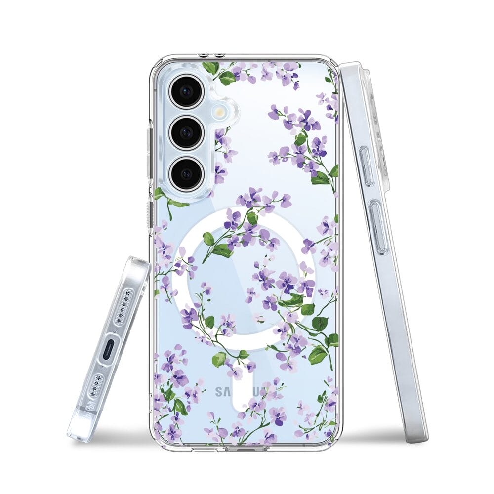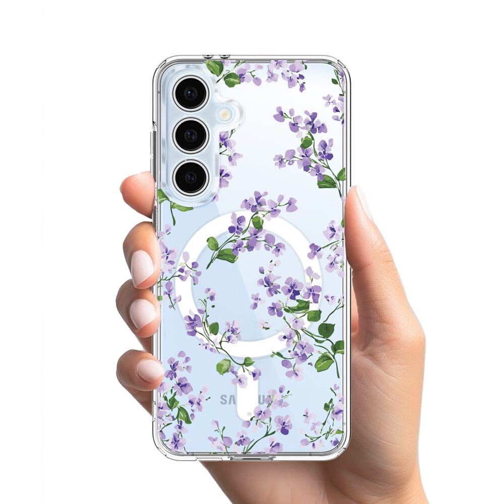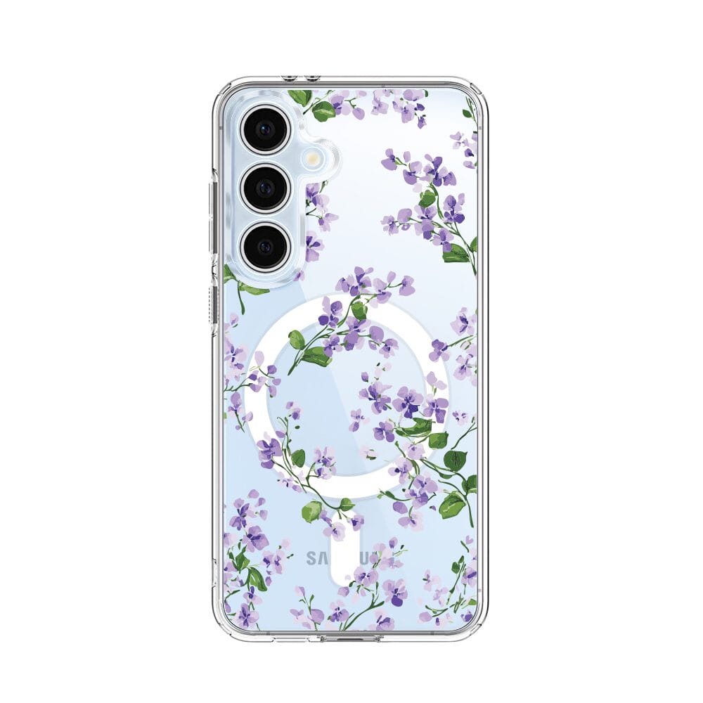 Etui do Samsung Galaxy S24 FE z MagSafe przeźroczyste, silikonowe Flexi, Fioletowe Bratki